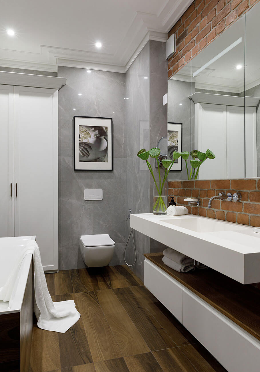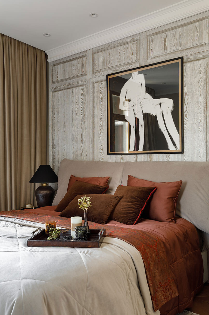 Серый цвет, как основа всего интерьера, с яркими винными и терракотовыми оттенками».