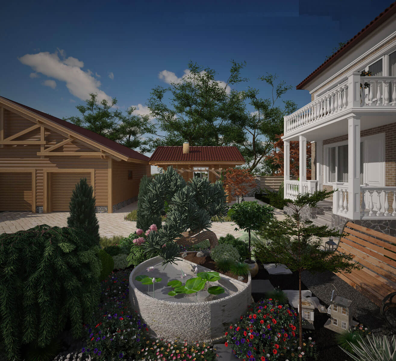 Японский садик с прудом: