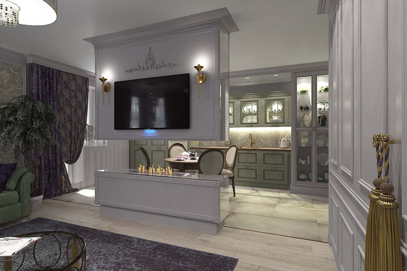 Огромным желанием нашей заказчицы было иметь камин в небольшой однокомнатной квартире. Мы решили, что для этого как нельзя лучше подходит биокамин.