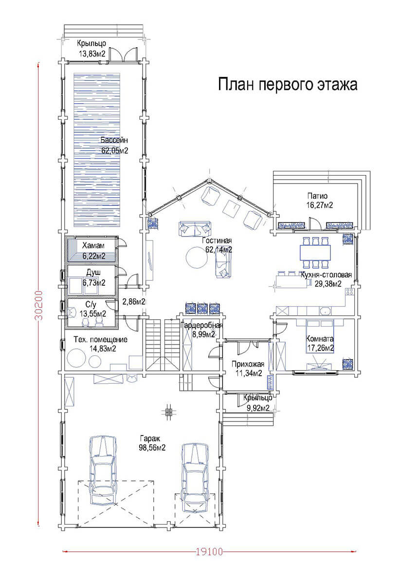 Спальня для гостей, санузлы, душевая и помещение для хаммама кажутся естественным продолжением комфорта первого этажа, а вот внушительный бассейн — 62 кв. м — делает его по-настоящему царскими покоями.