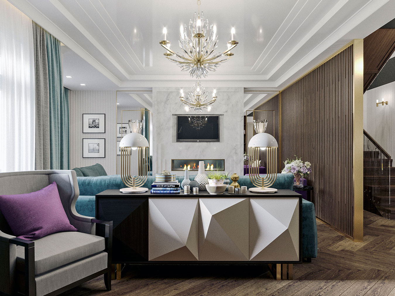Дом был спроектирован для большой семьи, для которой важны не только комфорт и удобство, но и эстетическое восприятие пространства — гармония, стиль. Интерьеры этого элегантного коттеджа оформлены в стиле современного ар-деко.