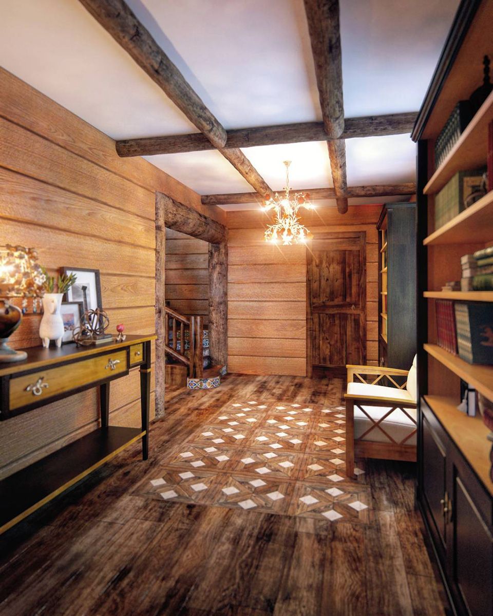 В отделке стен и пола используются состаренное дерево и пробка, делающие интерьер теплым, мягким и по-настоящему уютным.