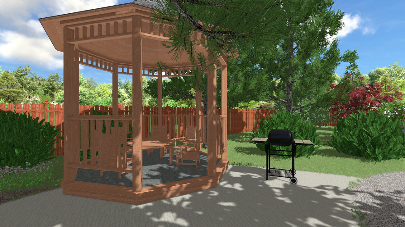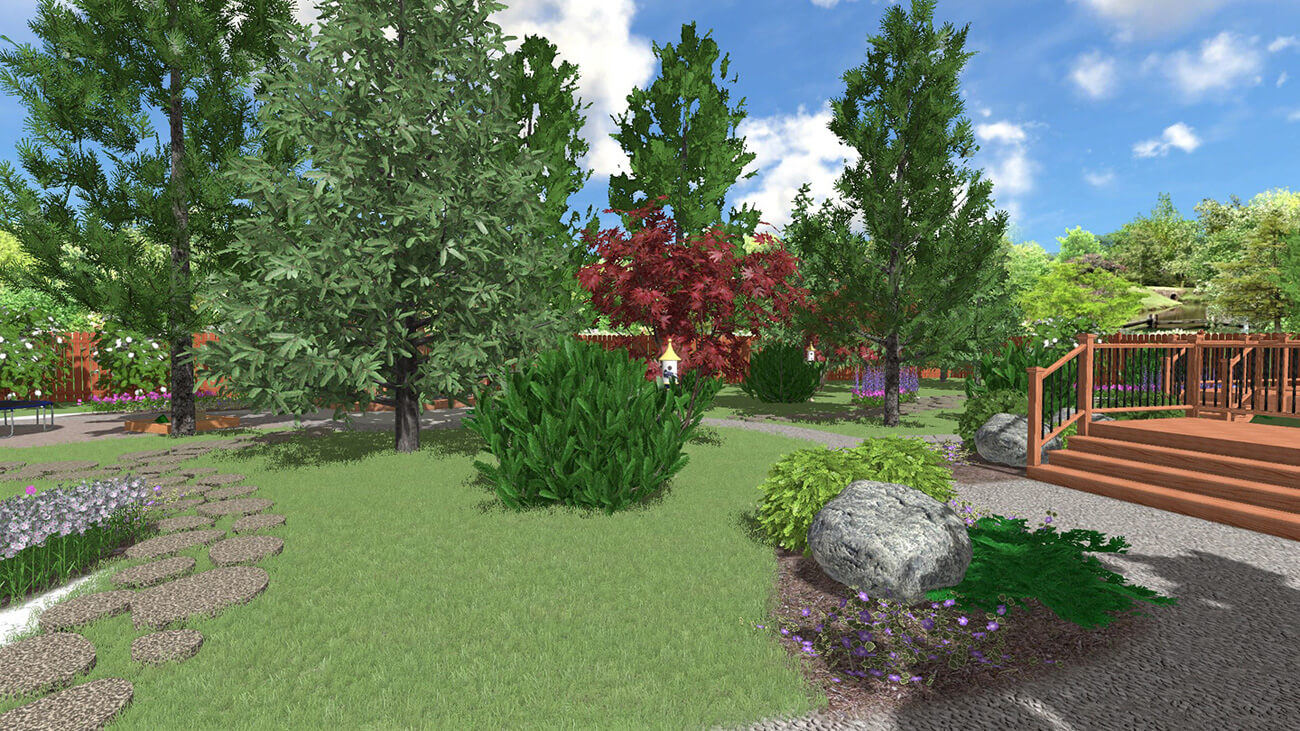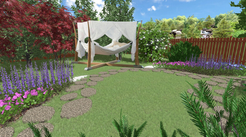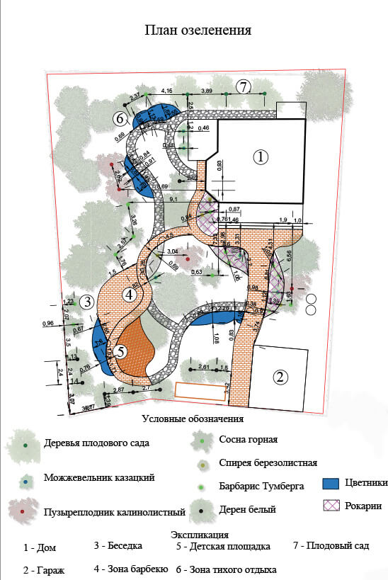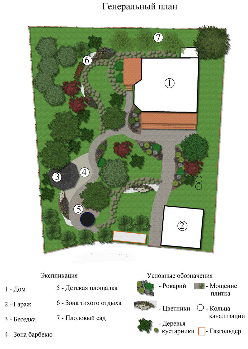 Пение птиц, шелест листвы, как хочется окунуться в атмосферу леса, сбежать от городской суеты. Благодаря проекту «Лесная сказка» такой уголок можно создать и у себя на участке. На территории предусмотрена зона плодового сада, зона барбекю с беседкой из натуральных материалов (древесина), откуда открывается живописный вид на свой небольшой лесок с каменистыми участками, детская площадка с батутом и песочницей, лужайка для отдыха с двухместным гамаком от ROYAL BOTANIA. Также на территории предусмотрены скворечники, где смогут поселиться летающие жители леса. Благодаря этому поддерживается биоразнообразие.