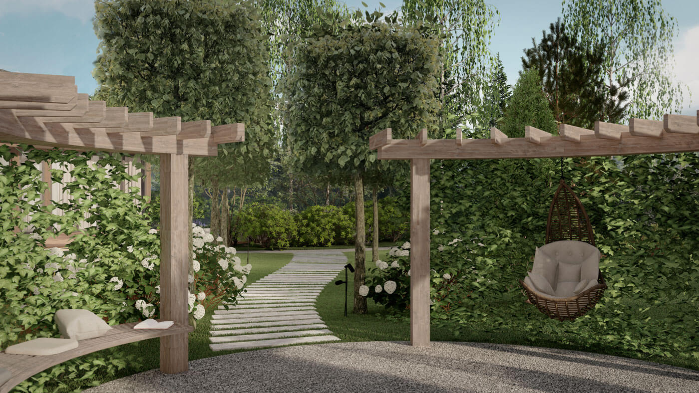 Если появилось желание отдохнуть в более спокойной атмосфере, то всегда можно пройтись по извилистым дорожкам в лесной зоне или покачаться на качелях в увитой зеленью перголе.
