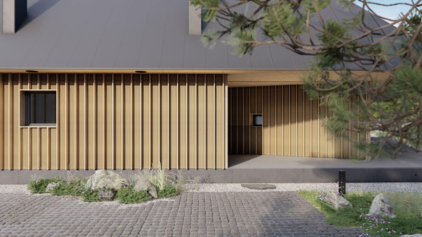 В этом проекте мы сделали акцент на доме и его архитектуре, а ландшафт подчеркнул и усилил его уникальность.