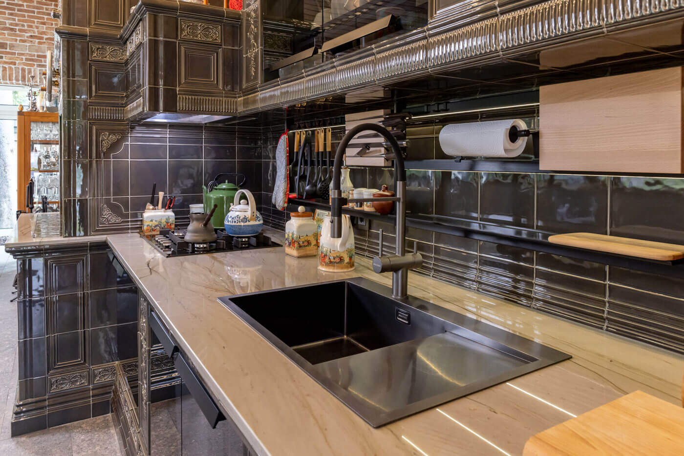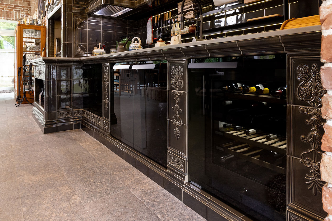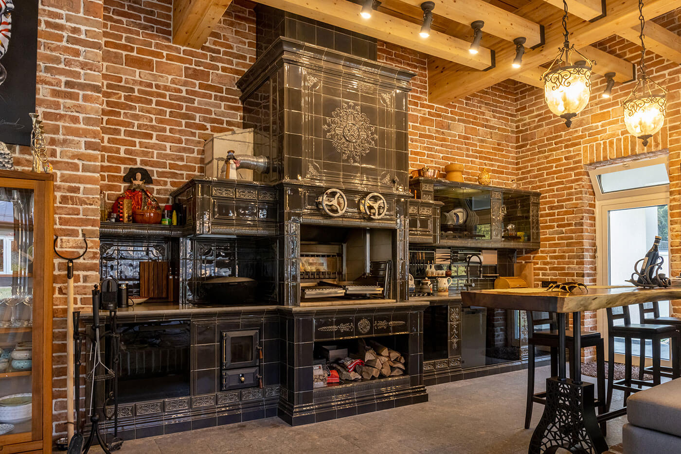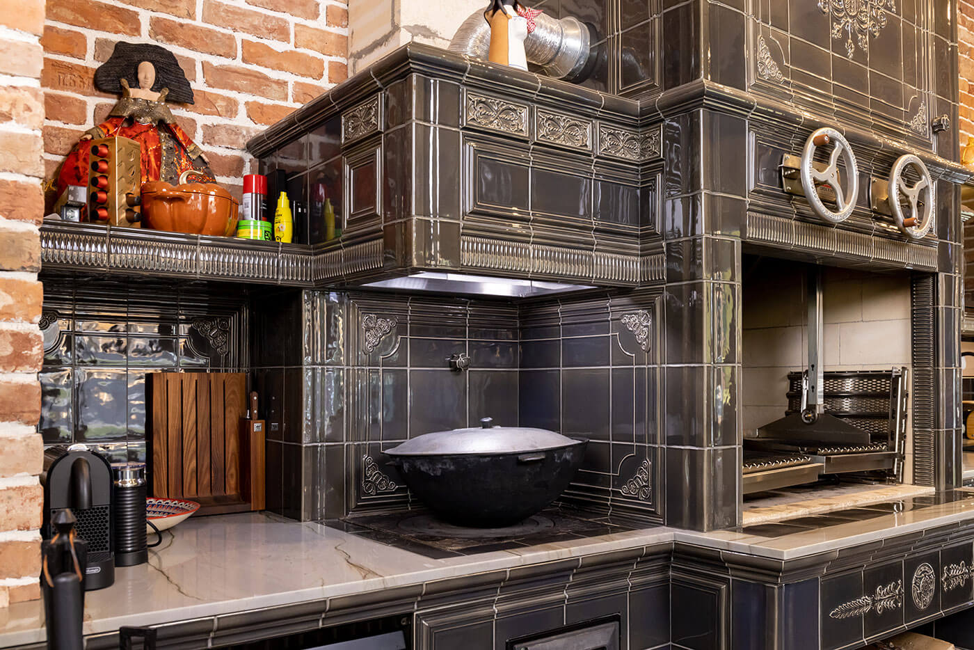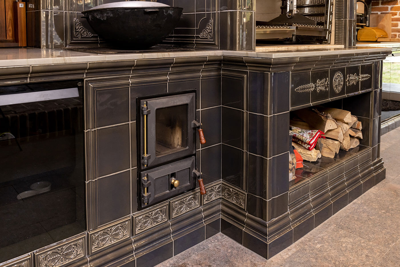 Кроме того, специально для этого барбекю комплекса была разработана новая глазурь серого цвета, чтобы ее оттенок идеально подходил к уже законченному интерьеру.