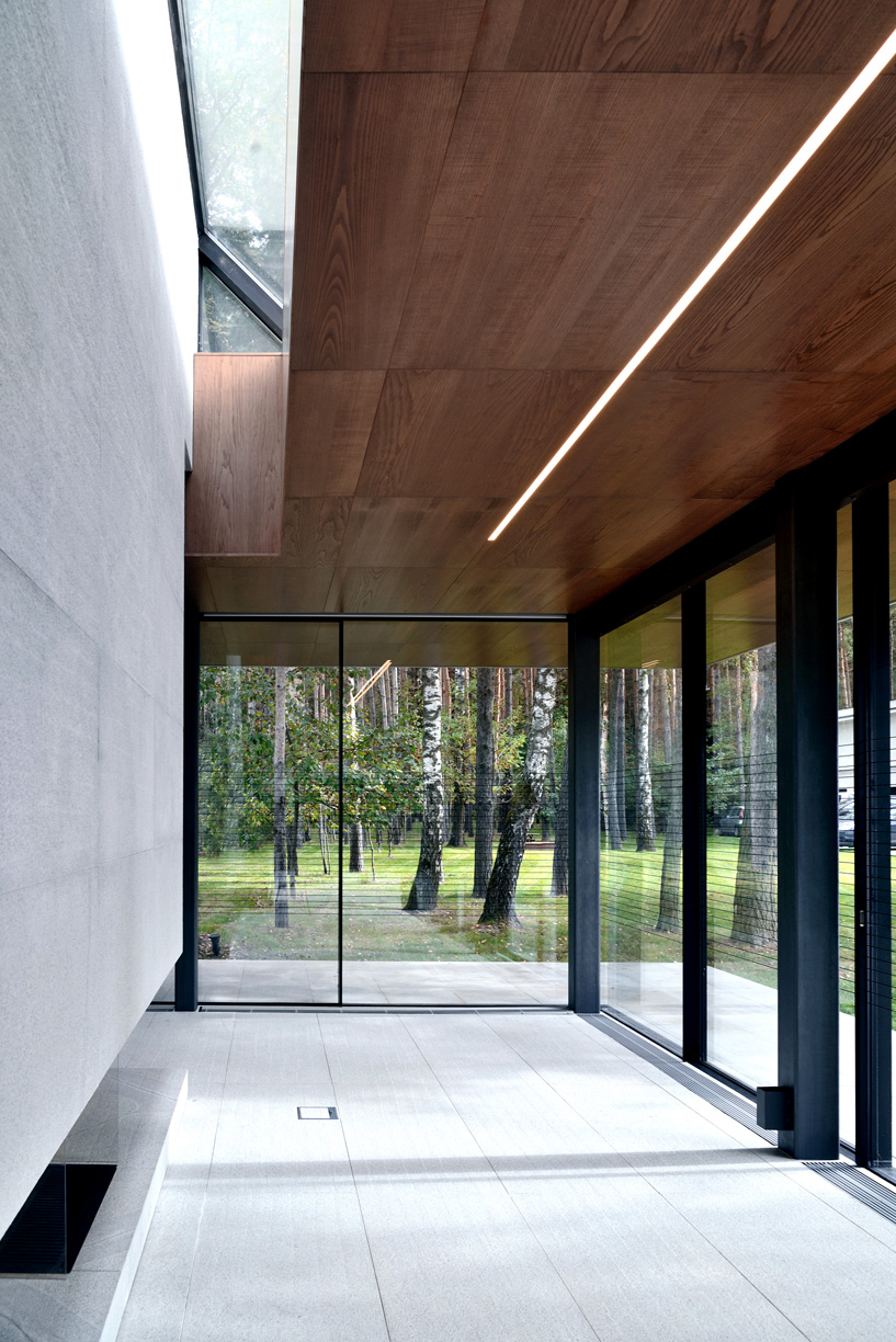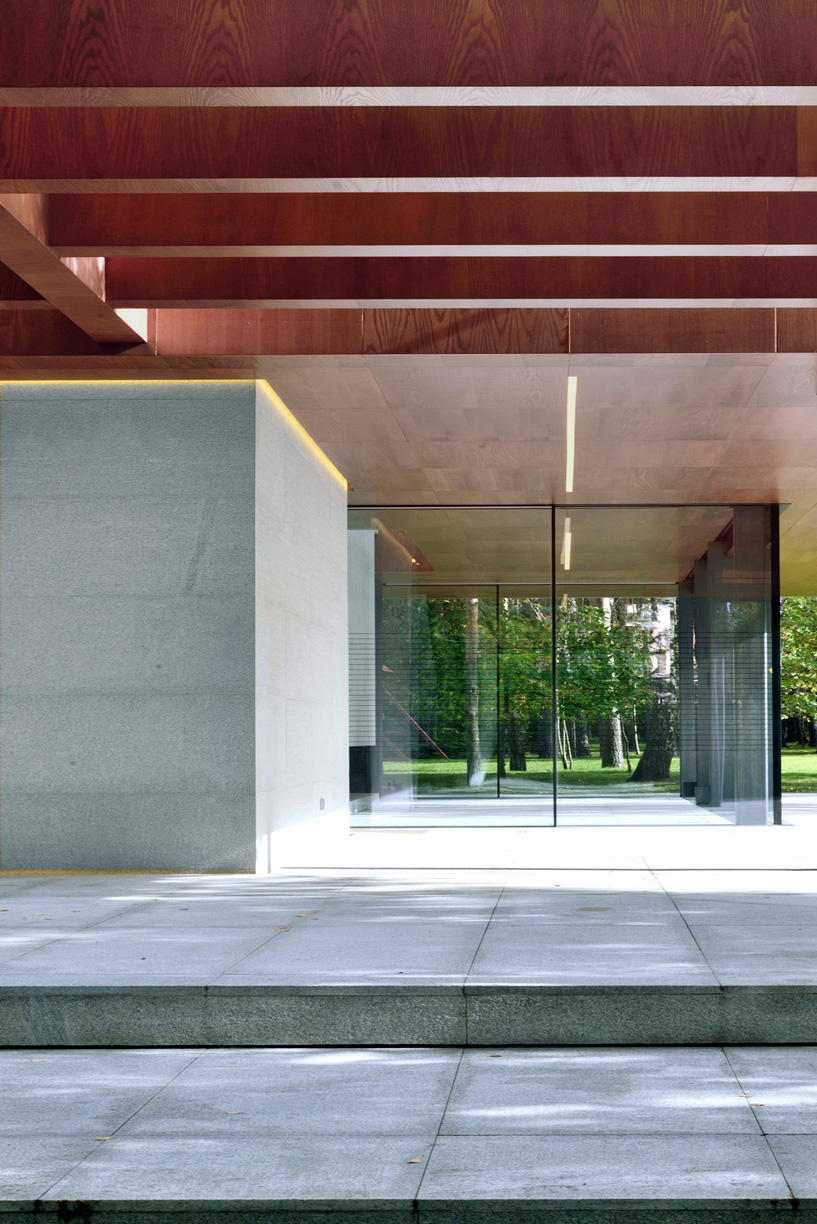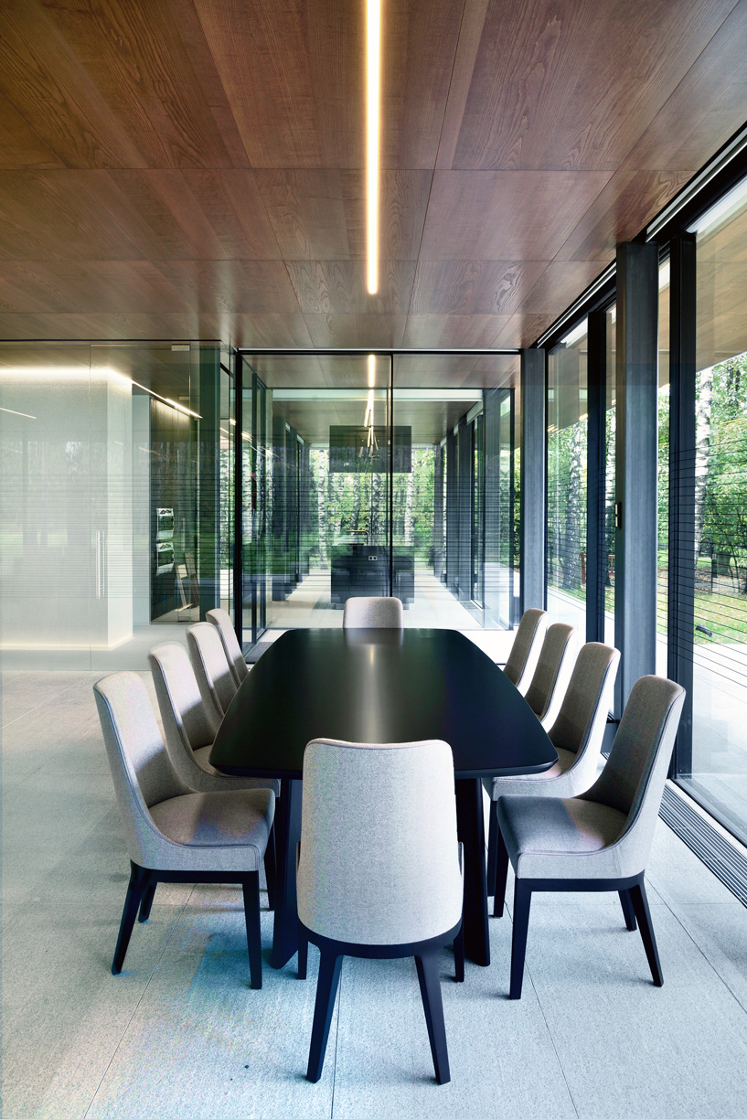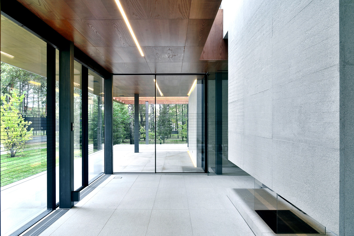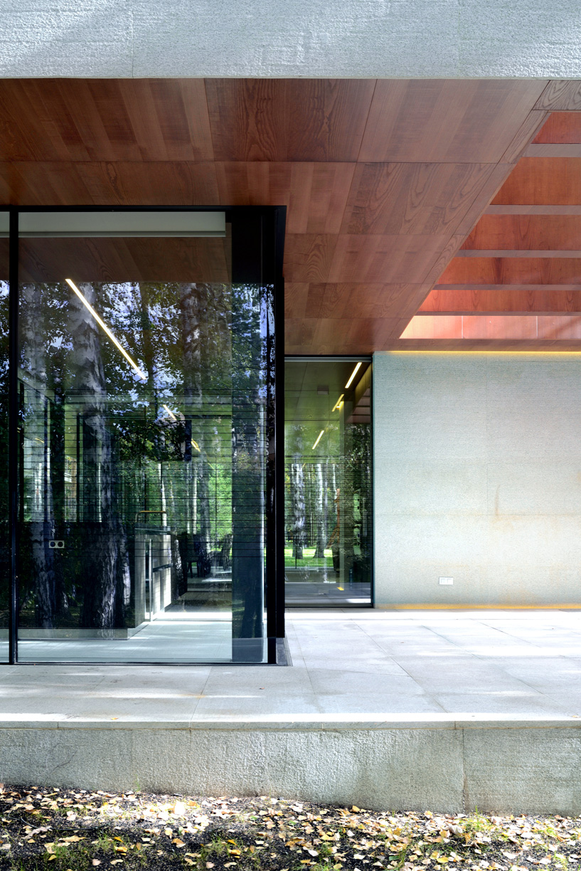 Павильон для приема гостей, монументальный и легкий одновременно, — современное прочтение архитектуры 60-х годов XX века. Линейные планировки, натуральные материалы, много остекления — все возвращает нас в историю, но технологии для воплощения идеи выбраны современные.