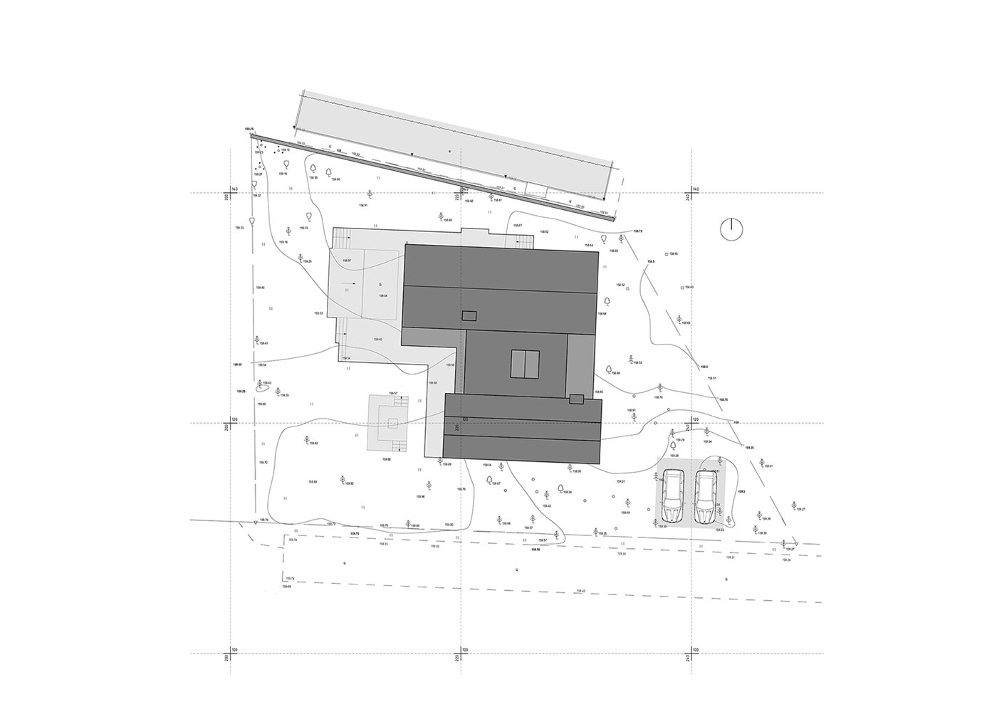 Участок расположен в уютном уголке дикой природы недалеко от мегаполиса. Мощный сосновый лес, свежий воздух, спокойствие и отдых. Дом аккуратно вписывается между стволами крупных деревьев, выполнен из экологичных и дружелюбных к среде материалов. Отделка из серого бразильского сланца и лиственничной доски оформляет двухчастный объем здания. При небольшой площади участка форма здания интеллигентно вступает в диалог с окружением. Отдельно находится место для стоянки автотранспорта и открытая спортивная площадка. К самому дому примыкает просторная терраса с зоной для застолий под навесом второго этажа, с барбекю, бассейном под открытым небом (с механической системой закрывания чаши), открытым летним душем и отдельной костровой.