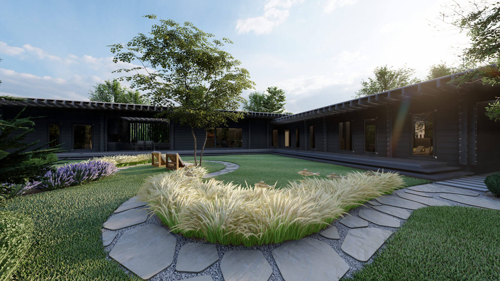 Органично вписать ландшафт в архитектуру дома, поддержав его стилистику и материалы.