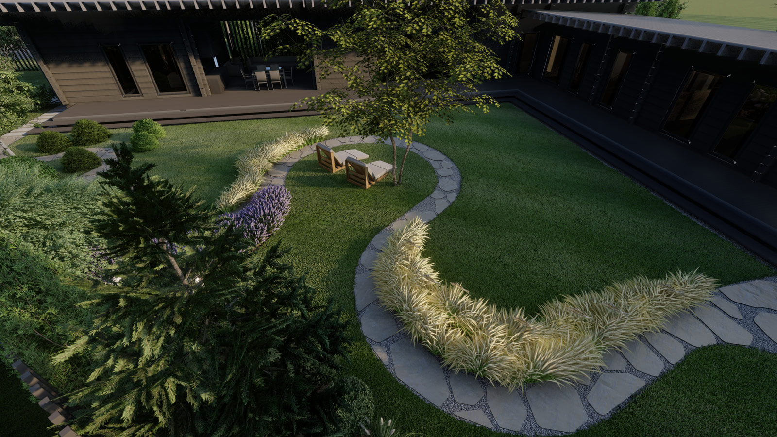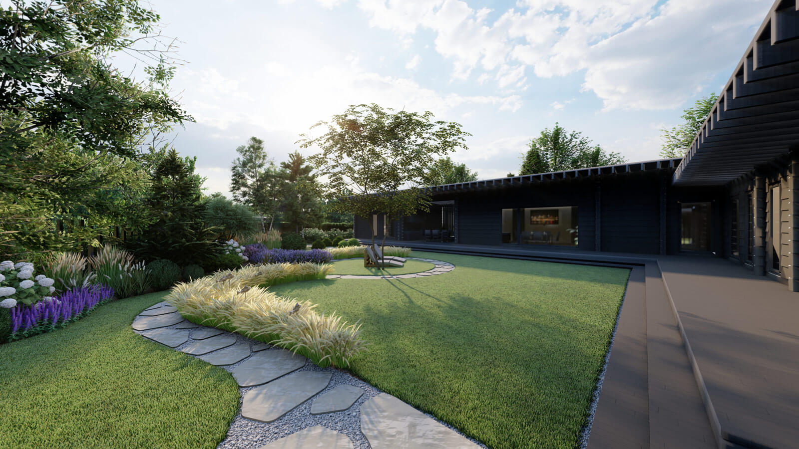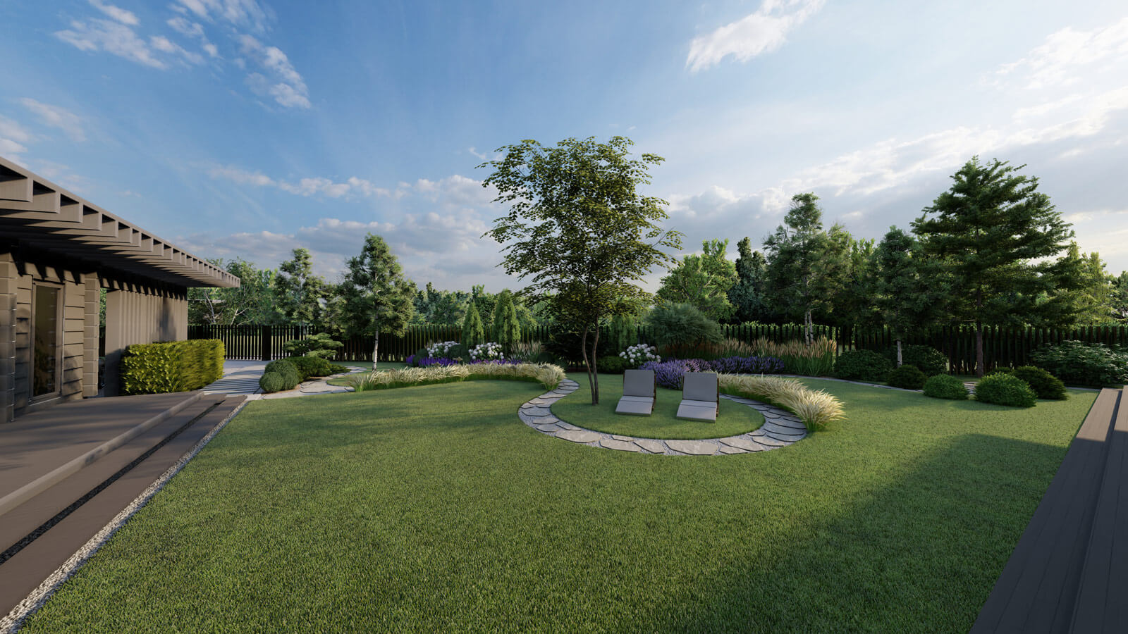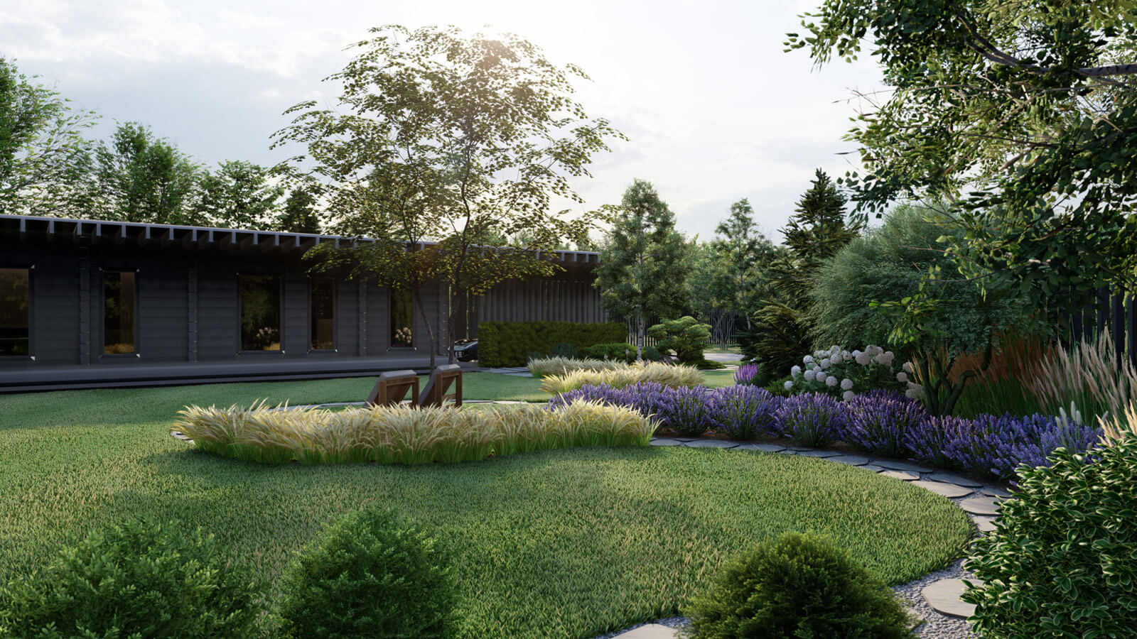 Этот сад — про движение, плавность и гармонию с природой. Пространство создавалось так, чтобы каждая зона естественно переходила в другую, а архитектура дома и ландшафт дополняли друг друга. В результате получился сад, в котором приятно находиться, гулять и наслаждаться окружающей средой.