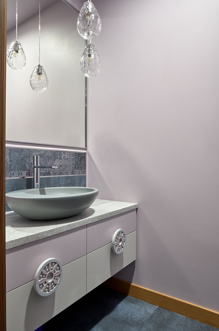 То, что заказчица будет проживать здесь одна и не постоянно, а лишь в течение рабочей недели, позволило привнести в проект чуть больше свободы в планировочном решении и сложных, изящных и стильных решений в декоре и колористике.