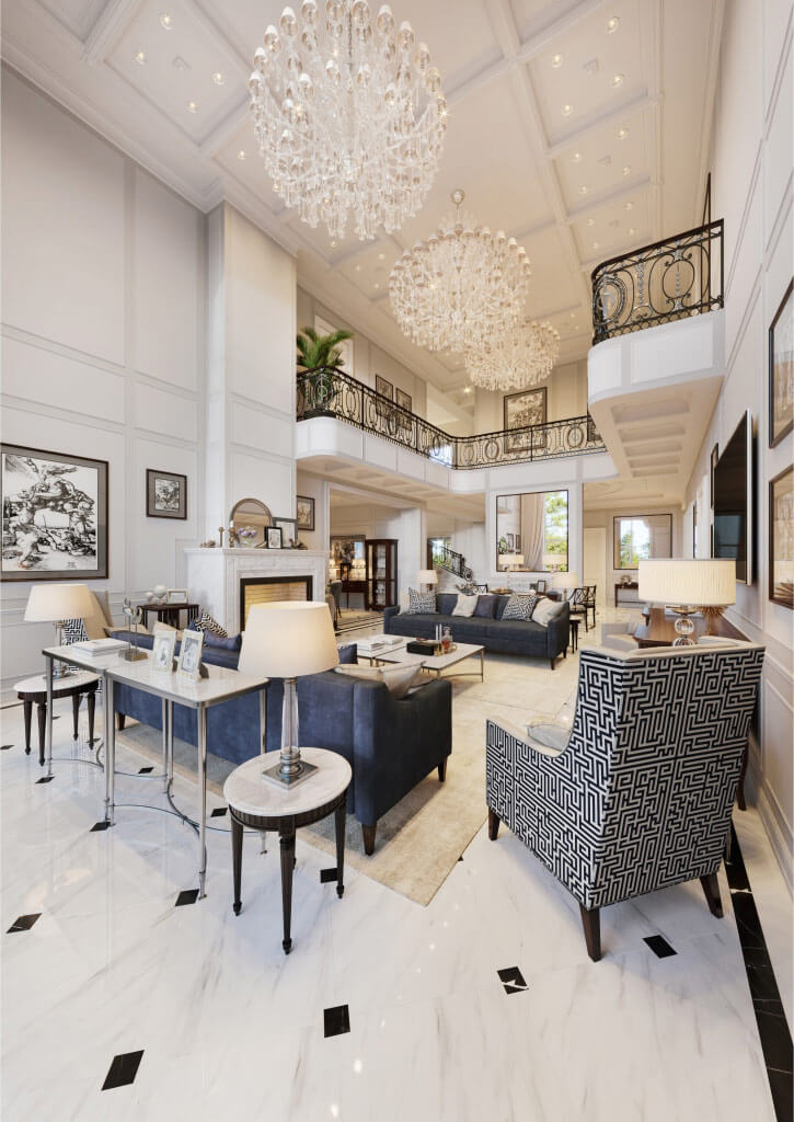 У заказчиков большая семья, которая любит путешествовать и бывать в новых местах. Представляя себе свой будущий дом, они хотели иметь поместье с пышными британскими пейзажами, но с достаточным пространством, чтобы каждый член их занятой семьи мог чувствовать себя комфортно и уютно дома. Сложная задача состояла в том, чтобы сочетать различные декоративные стили и при этом вписаться в окружающий пейзаж, а также создавать уют в личных покоях каждого члена семьи.