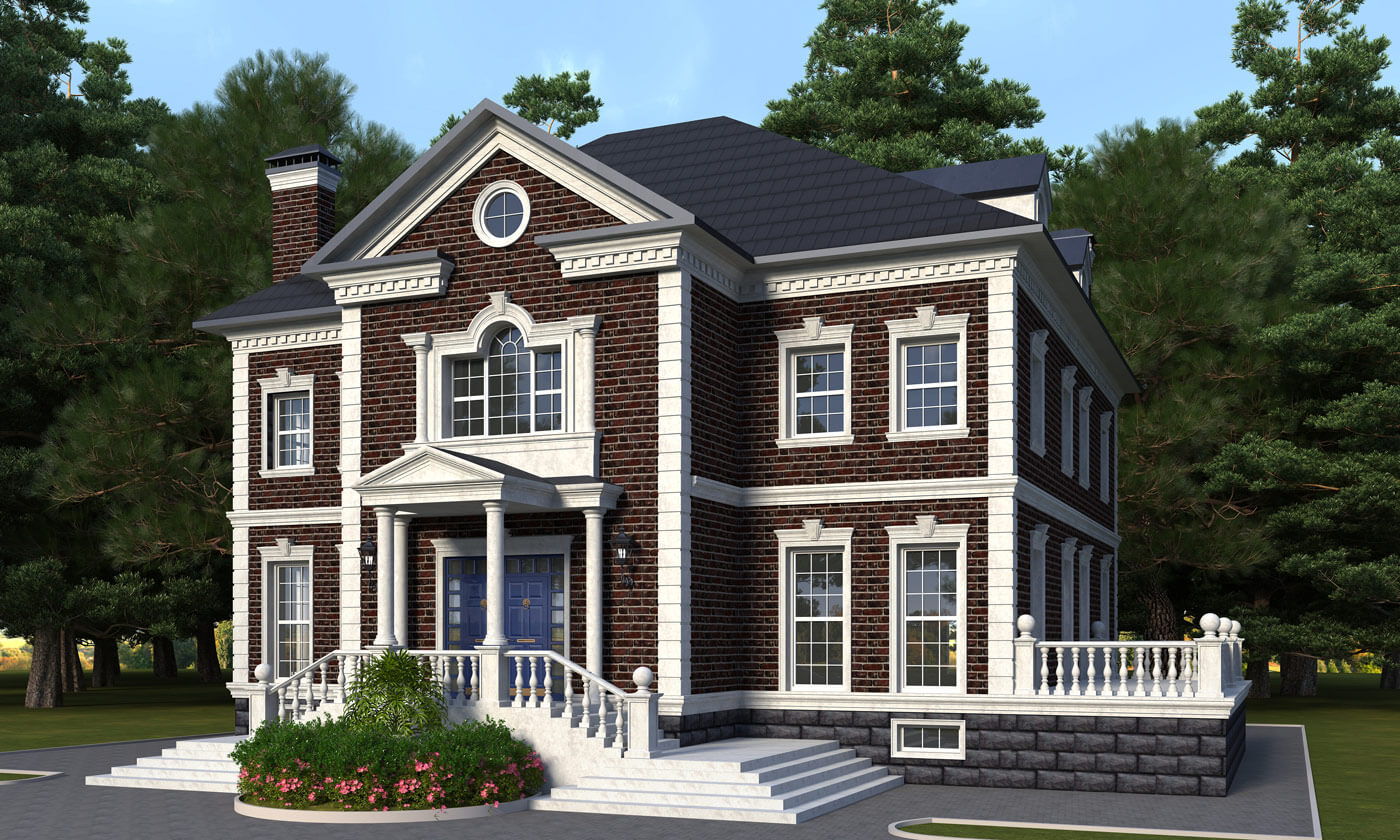 В процессе работы авторы остановились на компромиссном решении — фасад исполняется в спокойном, классическом английском стиле, который прекрасно подходит выбранному участку, а интерьеры — в светлой современной классике. В итоге получился уютный семейный особняк с высокими потолками и просторными помещениями, залитыми светом.