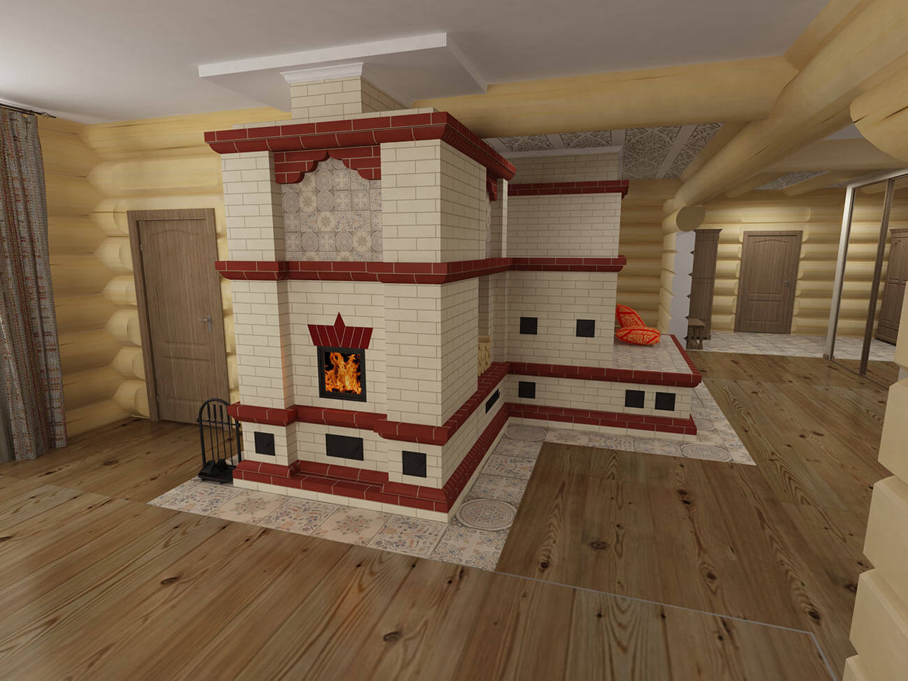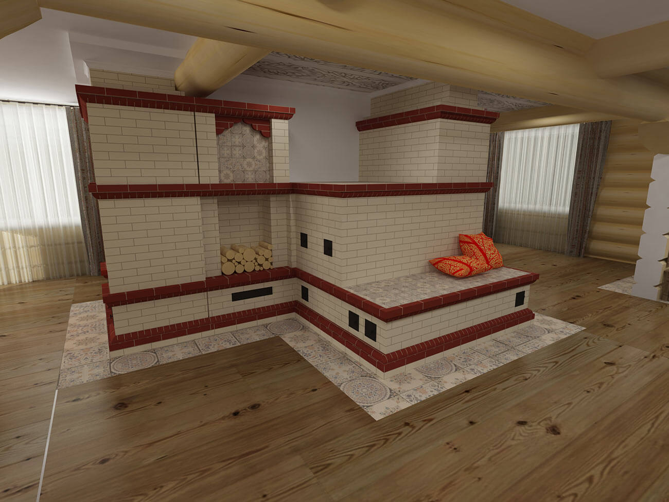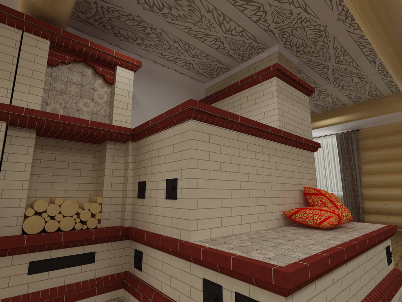 Желание организовать пространства вокруг печи в современном жилом помещении свидетельствует о стремлении воплотить исконные русские символы быта и бытия при необходимости учета последних тенденций средового дизайна и технических возможностей современности.
