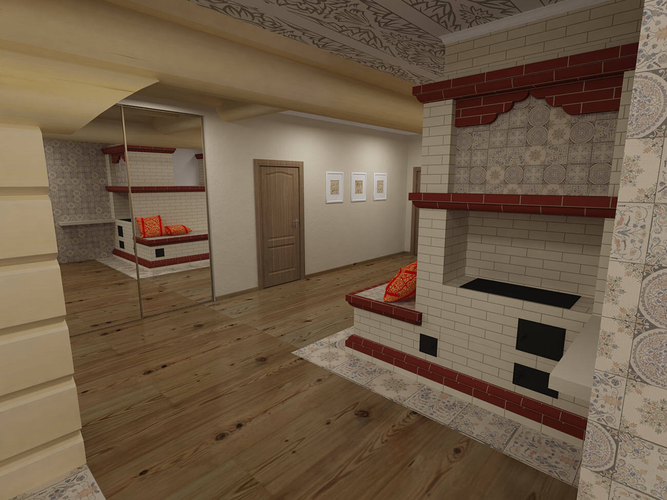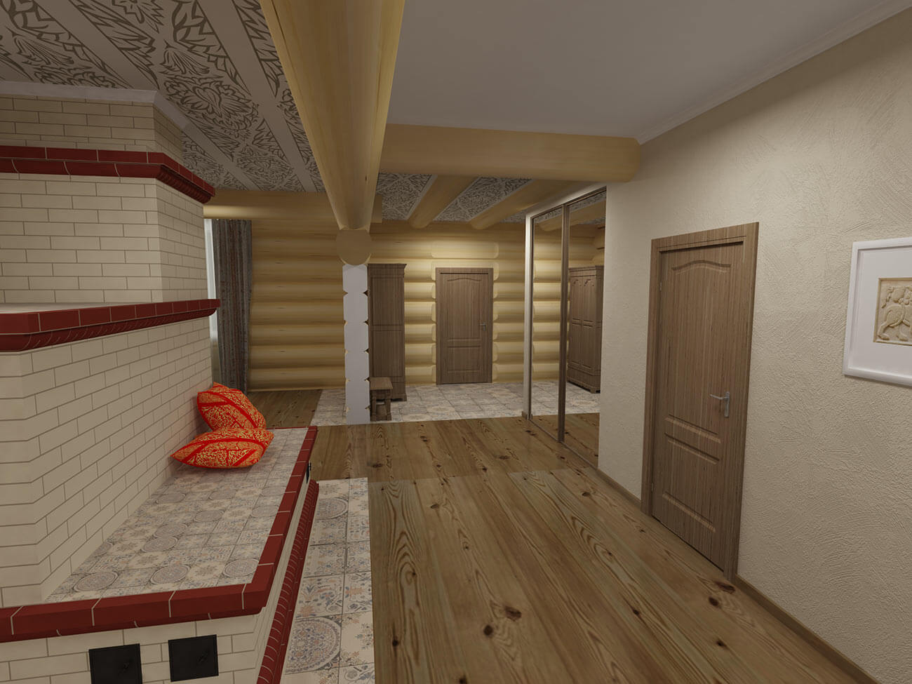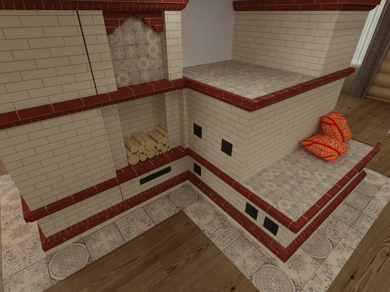 Желание организовать пространства вокруг печи в современном жилом помещении свидетельствует о стремлении воплотить исконные русские символы быта и бытия при необходимости учета последних тенденций средового дизайна и технических возможностей современности.