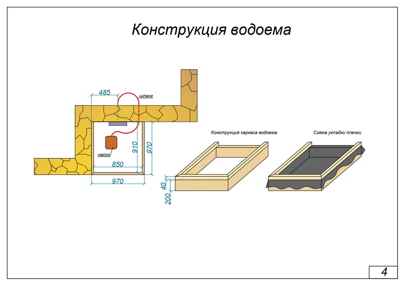 Плоскостная композиция построена по принципу асимметрии. Движение задается линиями контуров, чередованием фактуры и цвета покрытий, движением воды. Объемно-пространственная структура построена таким образом, что на относительно небольшом пространстве есть несколько активных видовых точек за счет установки высокой перголы, зрительно разделяющей сад на две основные зоны. Эффект «загадки» присутствует и при входе в зону с водоемом и при выходе в зону гравийного сада. Кроме того, высокая пергола зрительно увеличивает скромное по площади пространство.