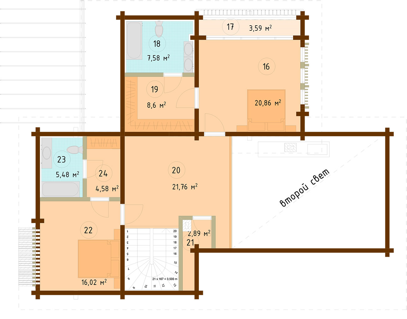 Перекрытие 2-го этажа — по клееным балкам.