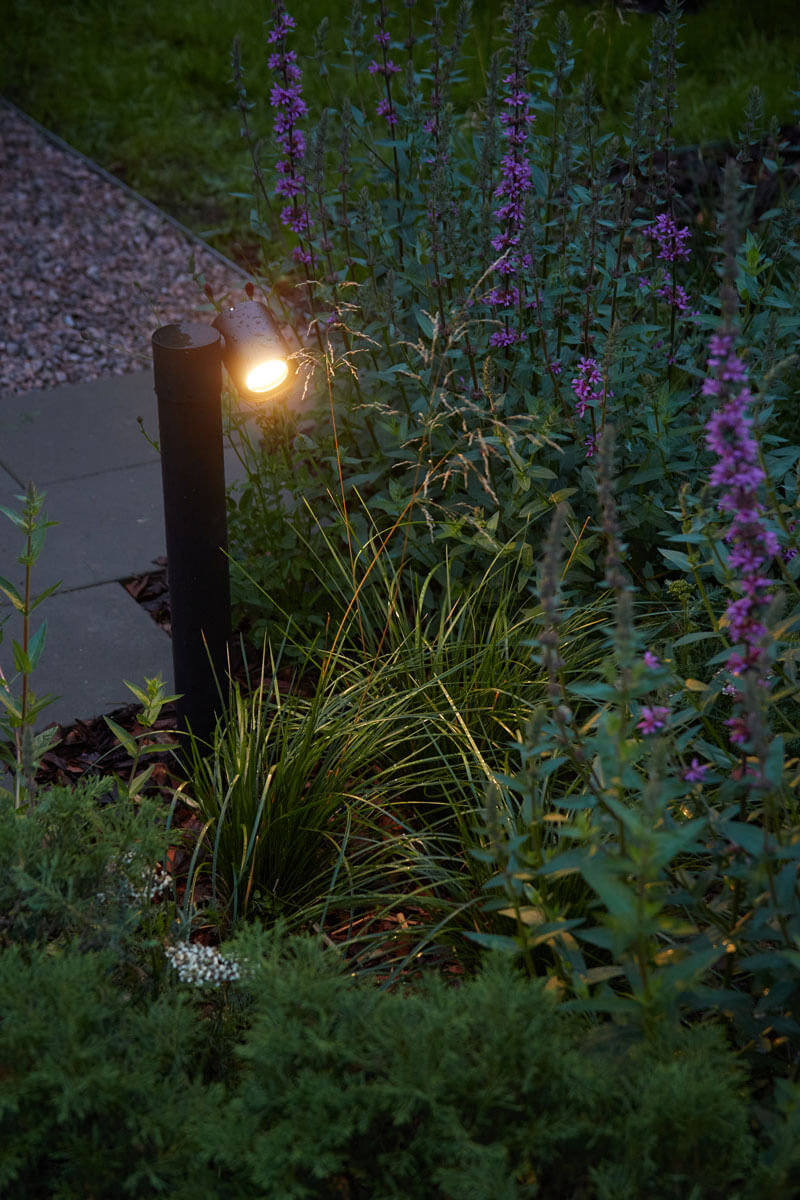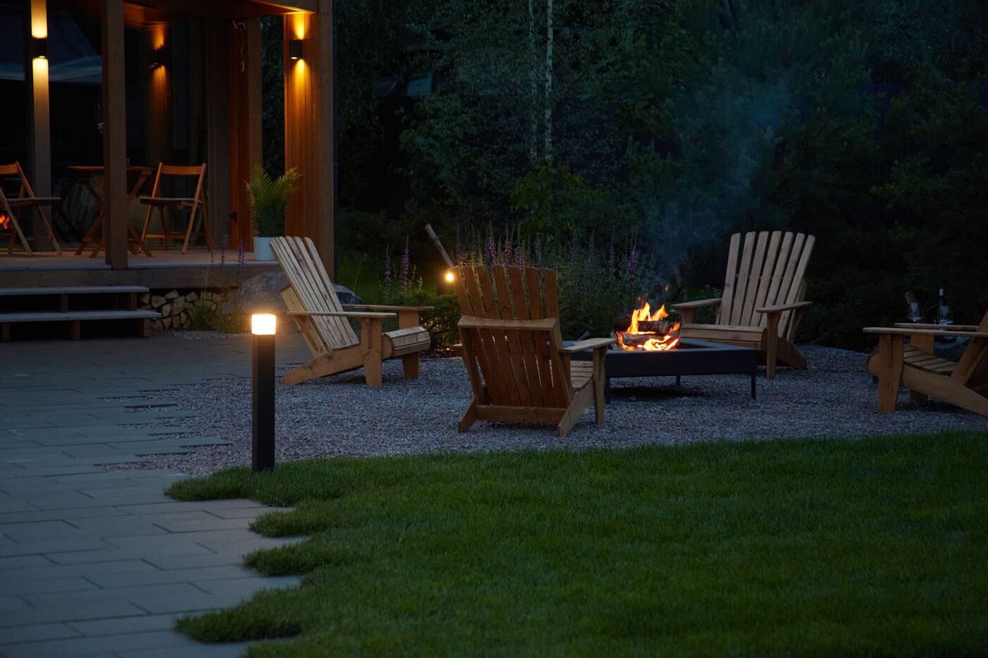 Все декоративные элементы поддерживают общую стилистику сада, преимущество было отдано натуральным материалам. Все растения подобраны в соответствии с климатической зоной, основной массив расположен вокруг зоны очага, чтобы визуально ее подчеркнуть. Отдали предпочтение соснам и многолетним травам.