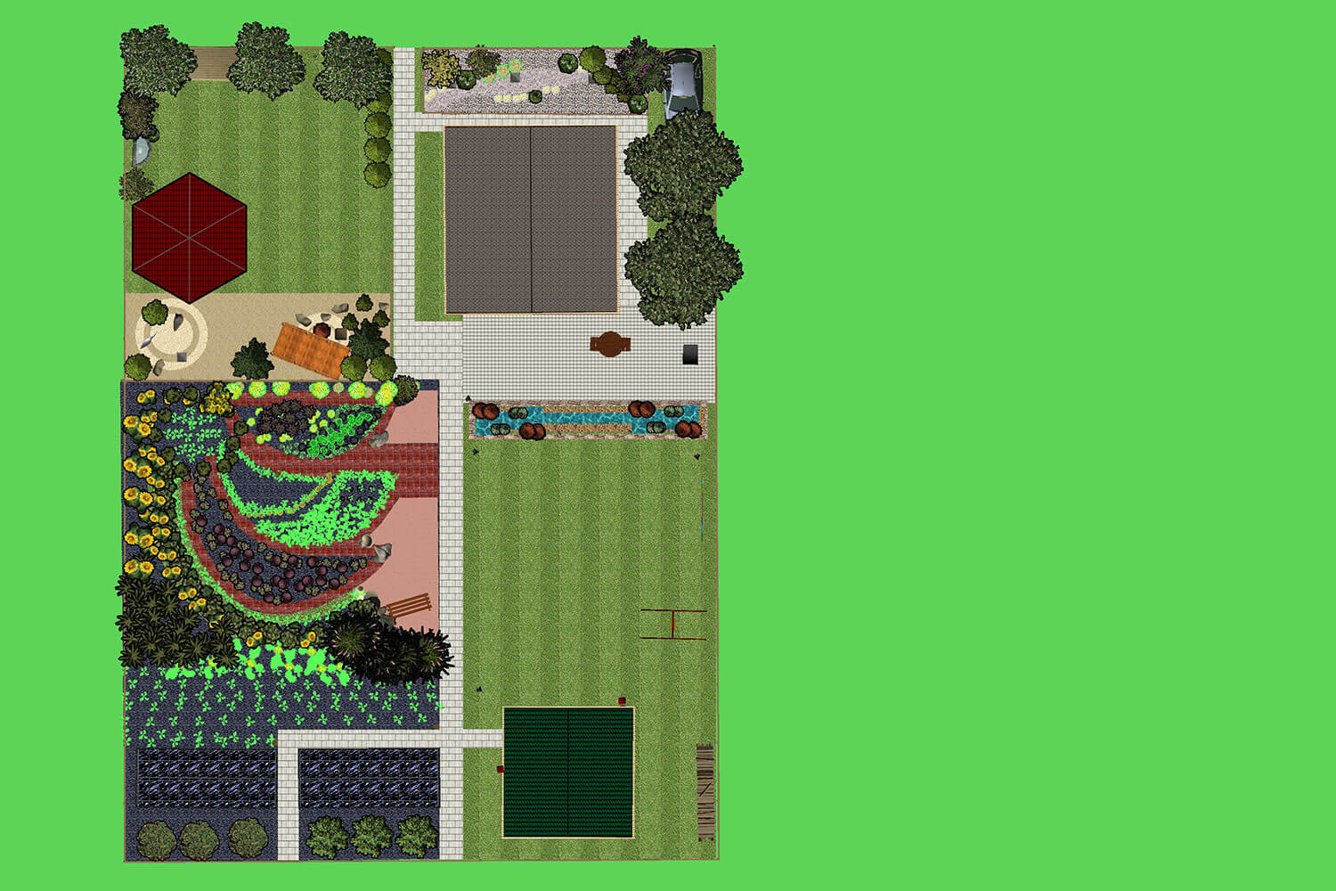 Для устройства цветника во входной зоне запроектированы хоста волнистая, хоста вздутая, туя западная «Даника», туя западная, флокс шиловидный, айва японская, жасмин пухоносный, ясколка войлочная, сирень японская, можжевельник горизонтальный, яблоня домашняя.