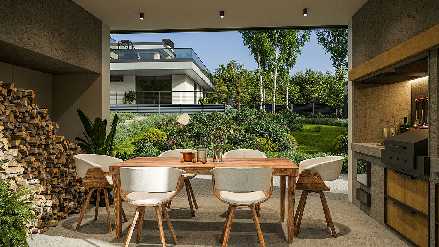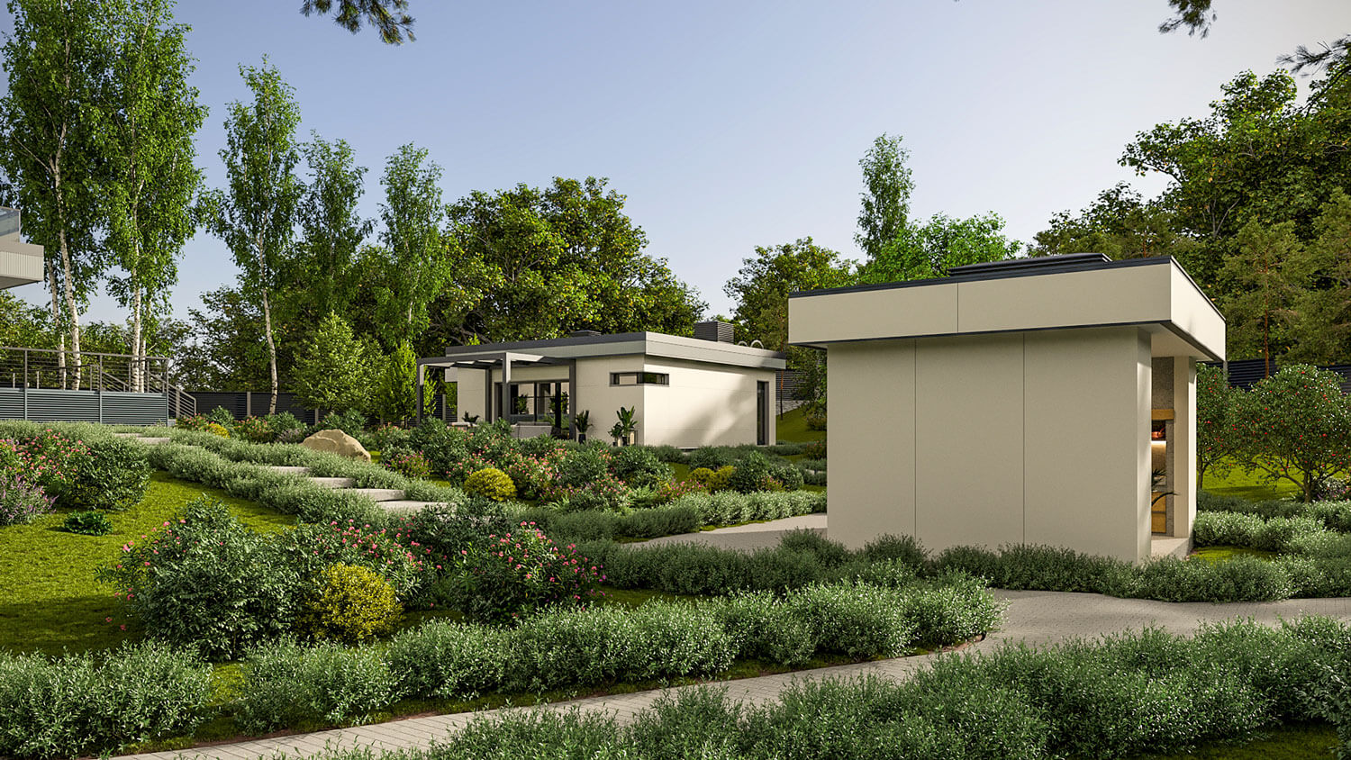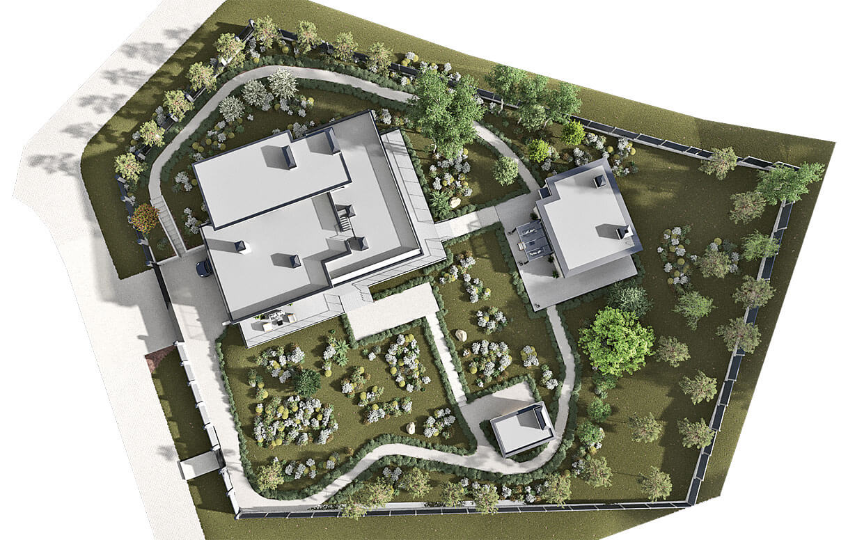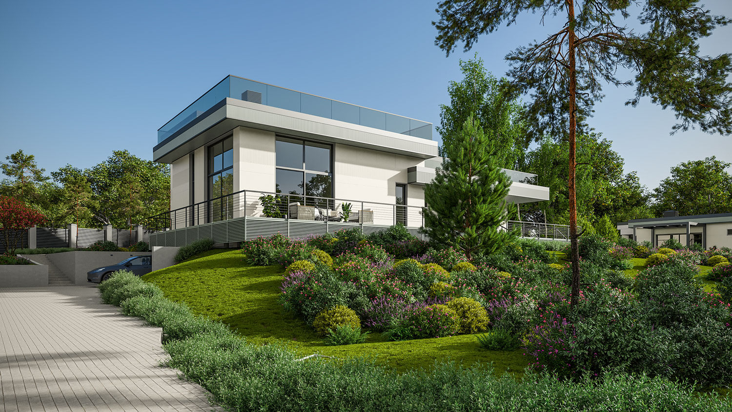 Архитектура виллы отличается четкими линиями, лаконичным дизайном, и задачей ландшафтного проекта было разбавить эту строгость.