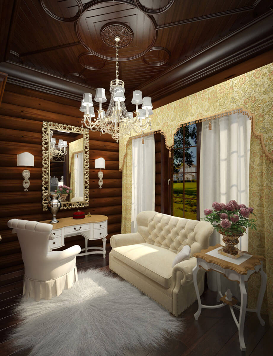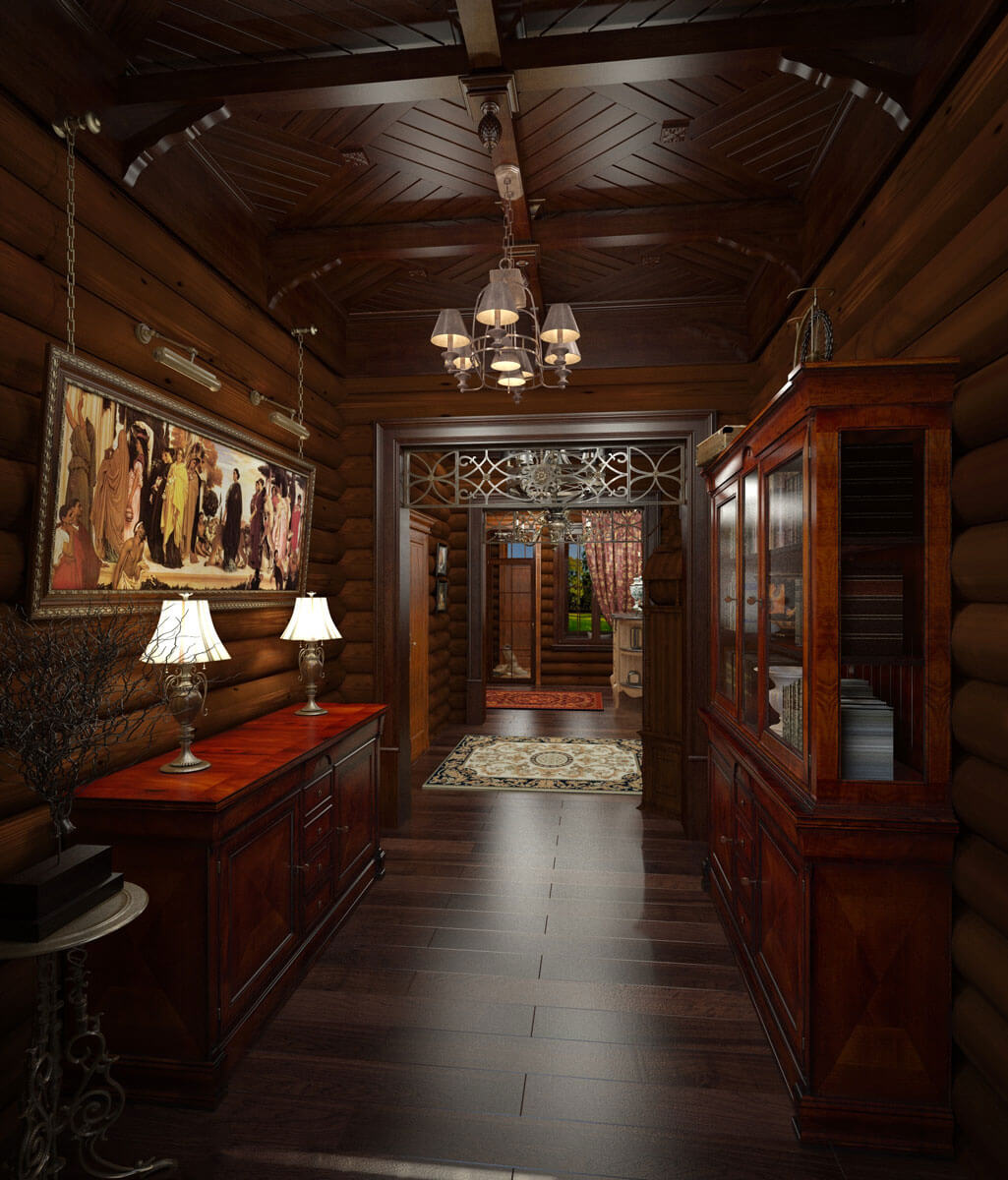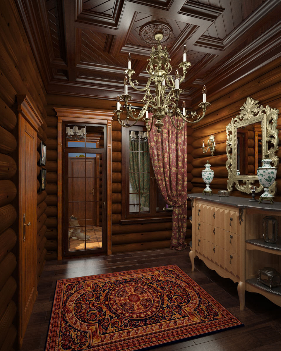 Заказчики дома общей площадью 221 кв.м — семья из трех человек. Проект дома был создан по науке «Васту». Супружеская пара стремится окружить себя натуральными материалами и современными технологиями. Так родилась идея построить и обустроить дом из оцилиндрованнного бревна. Была поставлена задача, сделать интерьер сочным с ярким декором, наполнив его различными фактурами, детально проработанными поверхностями. Поэтому все приемы, все декоративные элементы, которые применялись в проекте, решали эту задачу.