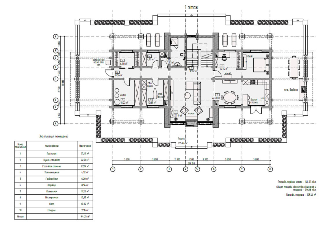 на 1 этаже: гостиная-кухня-столовая с выходом на террассу, спальня, с.у.