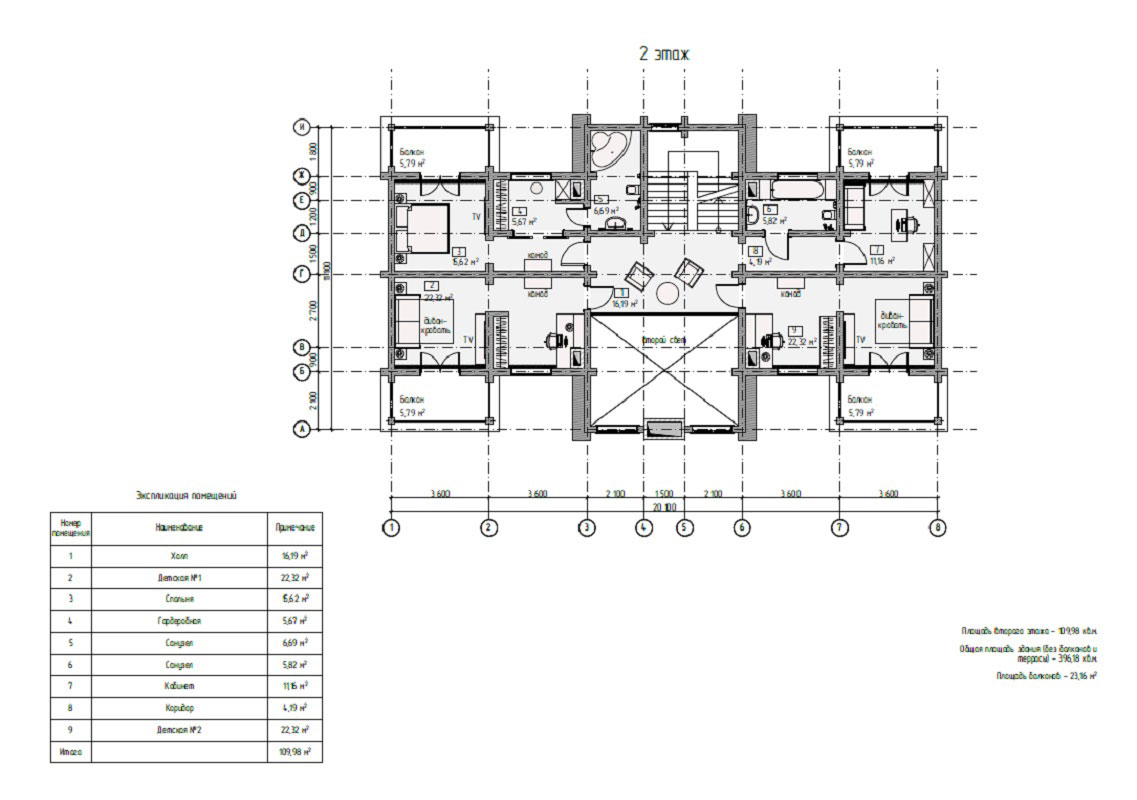 на 2 этаже: 3 спальных комнаты с с.у. и гардеробными, кабинет