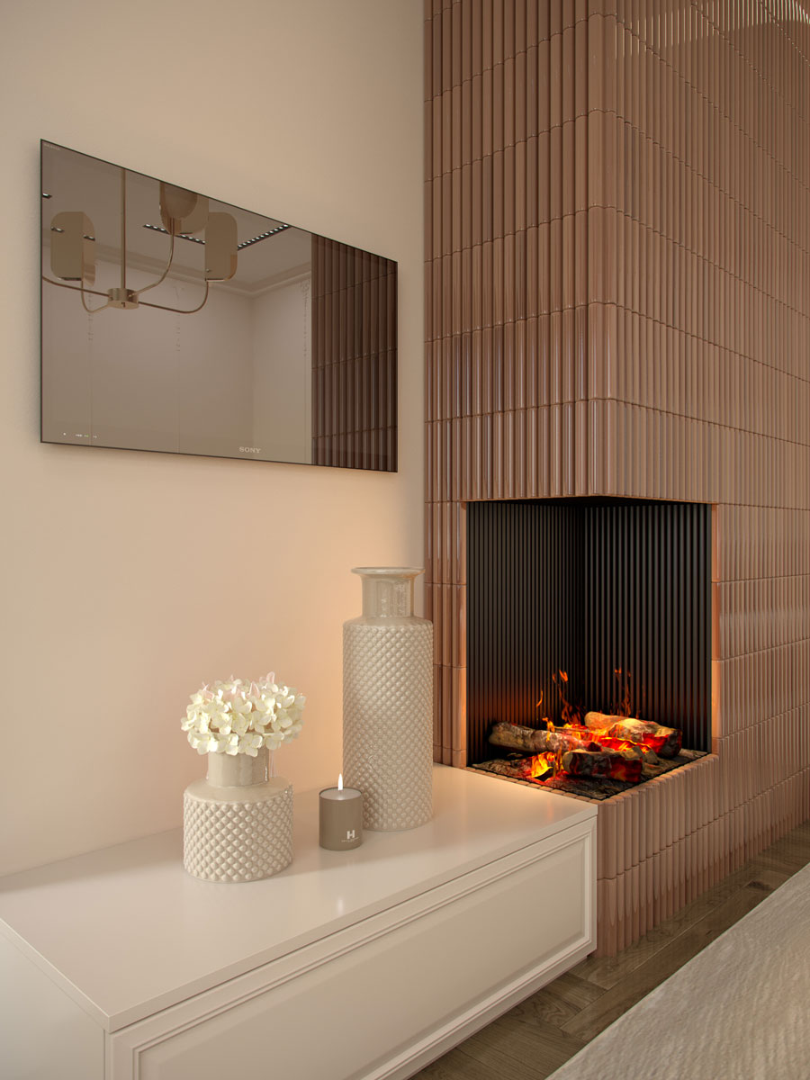 Так как это квартира, то был использован самый безопасный вариант пламени – это электрокамин. За основу взяла Электро очаг Dimplex Cassette 500.