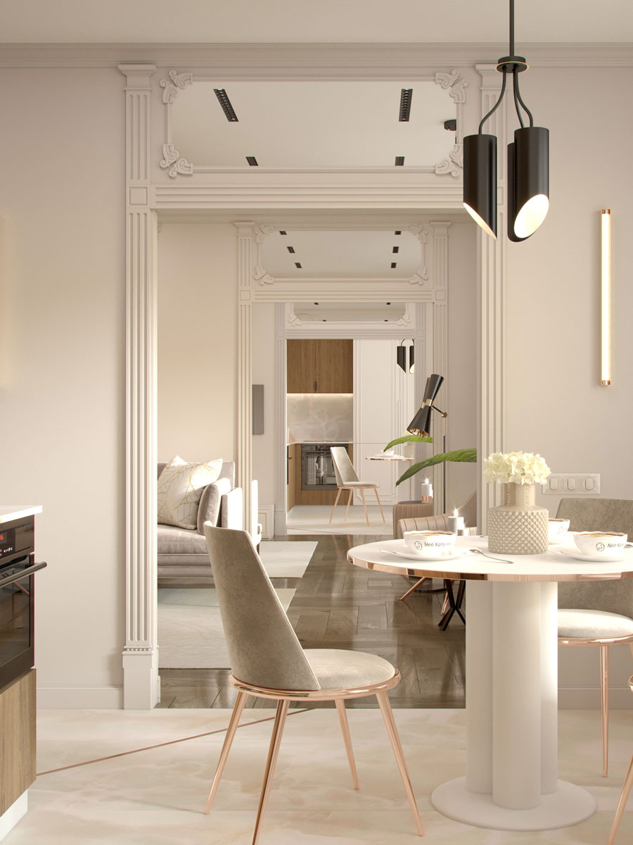 Проект «НЕОКАПУЧИНО» создавался для семьи потомственных врачей. Респектабельным хозяевам хотелось видеть свой дом благородным, стильным, изысканным, с ноткой истории и шарма. Была сразу определена вкусная цветовая гамма с ароматом кофейных зерен.