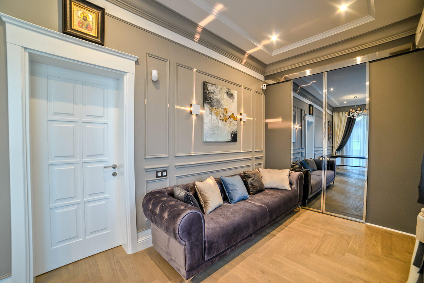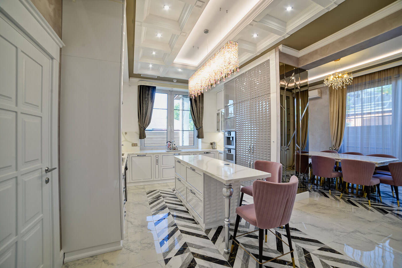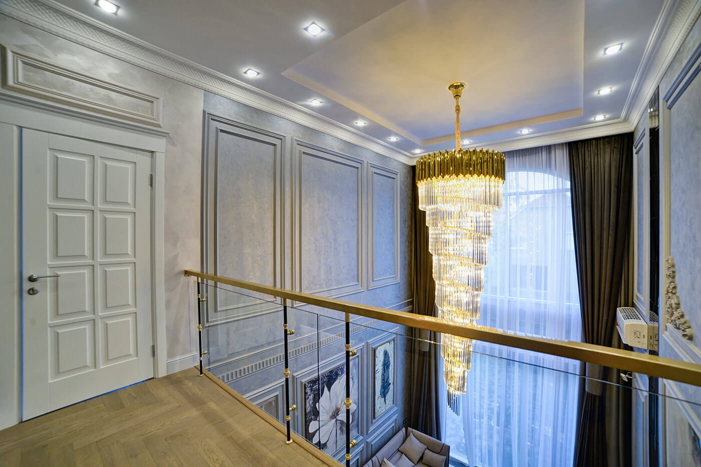 Этот дом мы проектировали для счастливой семейной пары, к которым в гости постоянно приезжают внуки. Семья современная, с хорошим чувством стиля. Поэтому для реализации дизайн-проекта выбрали неоклассицизм, где главные составляющие — функциональность и удобство. Логистика непростая, но понятная для хозяев.