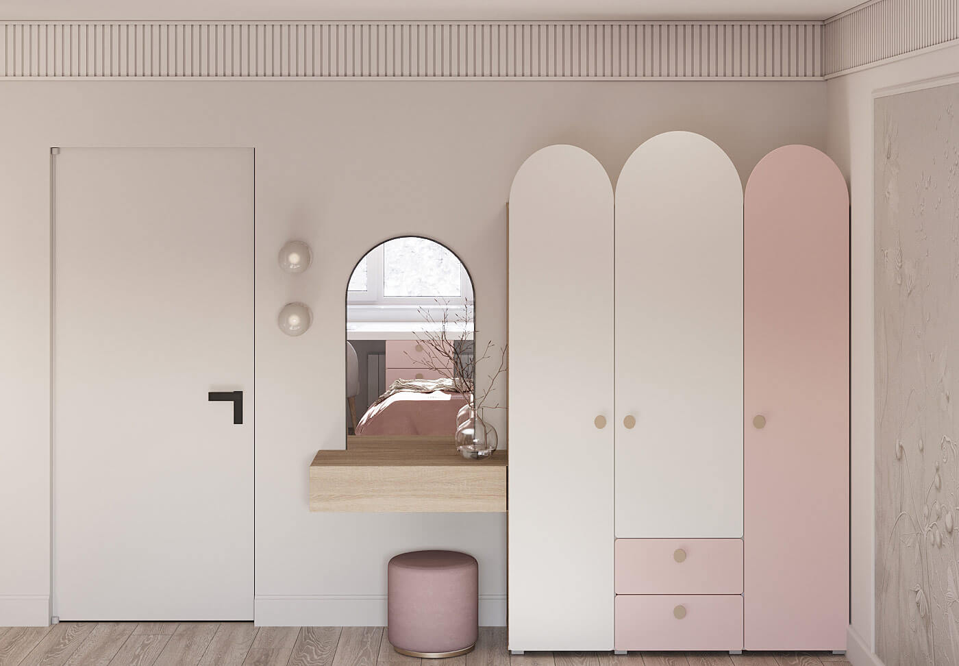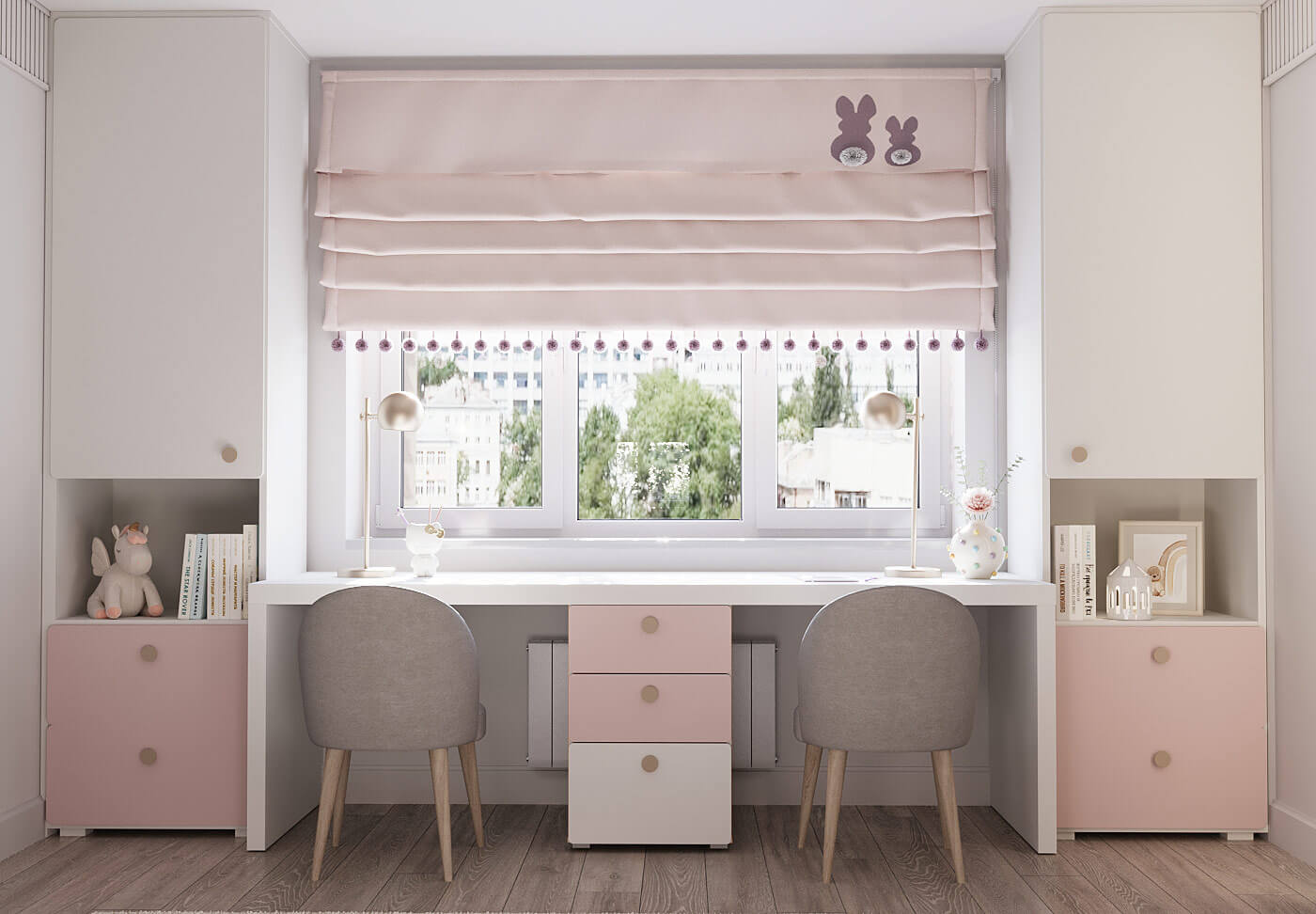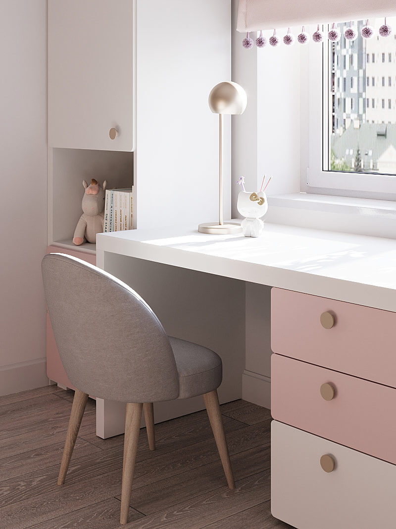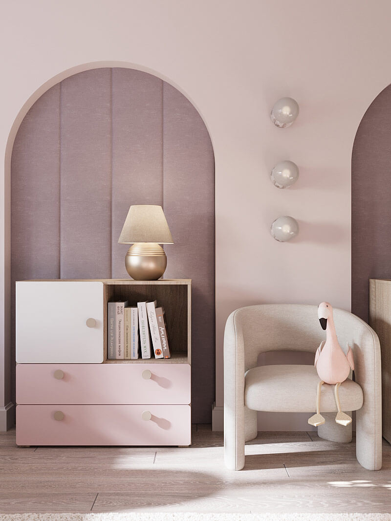 Главная идея этого интерьера – создать уютное пространство для двух девочек, наполненное нежностью, теплом и дружбой. А также предусмотреть зоны личного пространства для каждой из сестер.