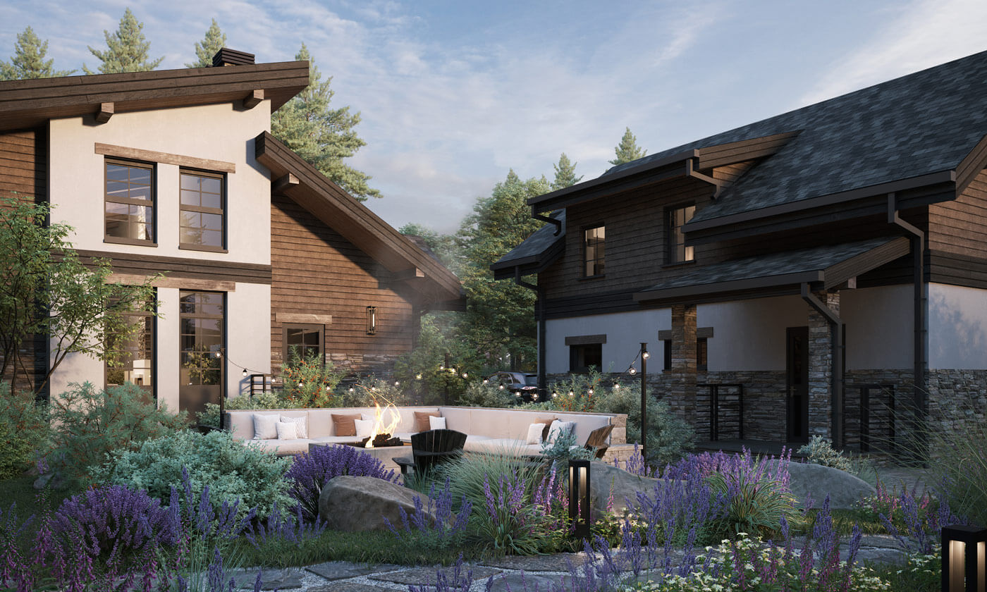 Для украшения скандинавского сада выбраны плодовые деревья, кустарники, злаковые и почвопокровные растения, хосты и цветы (например: облепиха, ирга, спирея, лаванда, котовник, зайцехвост, овсяница, дельфиниум, гортензия, и др.). Вечнозеленые растения (сосна, ель, туя) опоясывают территорию, это позволяет создать ощущение единения с окружающим комплекс вековым лесом.