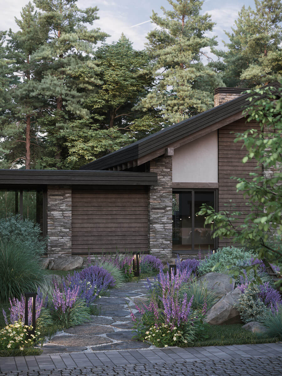 При создании ландшафтного дизайна на территории участка были учтены последние тенденции и принципы скандинавского стиля. Простота и строгость, функциональность и сдержанность, были использованы природные материалы. Выбранные растения подчеркивают особенности стиля и создают атмосферу умиротворения и спокойствия.