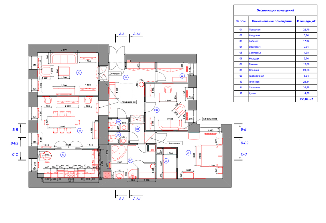 Комнаты: прихожая, кладовая, кабинет, два санузла, коридор, ванная, хозяйская спальня с гардеробной, гостиная, столовая, кухня.