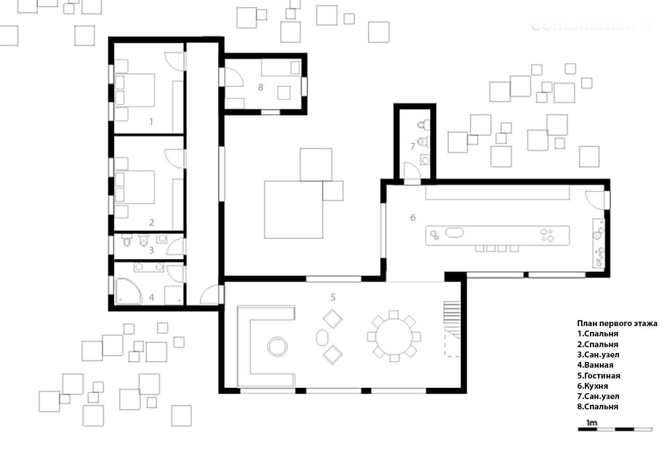 Открытая планировка. Эргономичный план этажа обеспечивает баланс между личным и общественным пространством. При разработке плана можно обратиться к принципам Фрэнка Ллойда Райта, которые помогут объединить блоки и создать оптимальные внутренние перспективы, что позволит удовлетворить индивидуальные потребности клиентов.