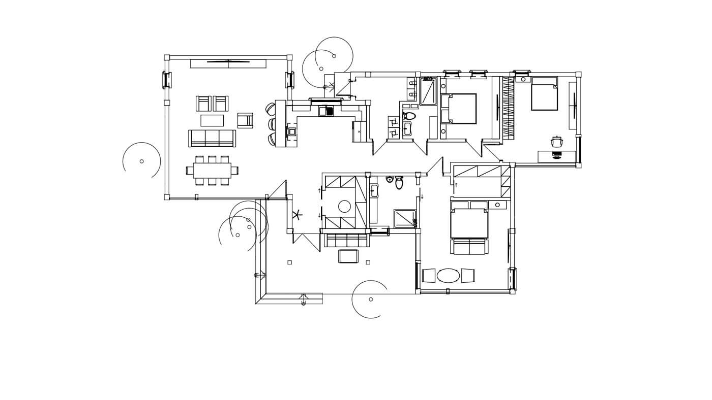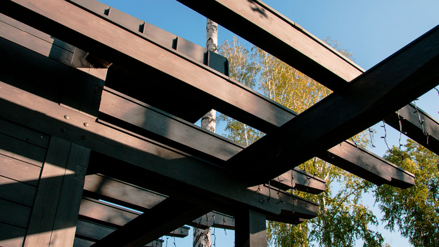 Дом запроектирован и построен из клееного бруса. В конструкции предусмотрен безусадочный каркас, что позволяет дому иметь стабильную геометрию дома в течении всей эксплуатации дома, вне зависимости от времени года.