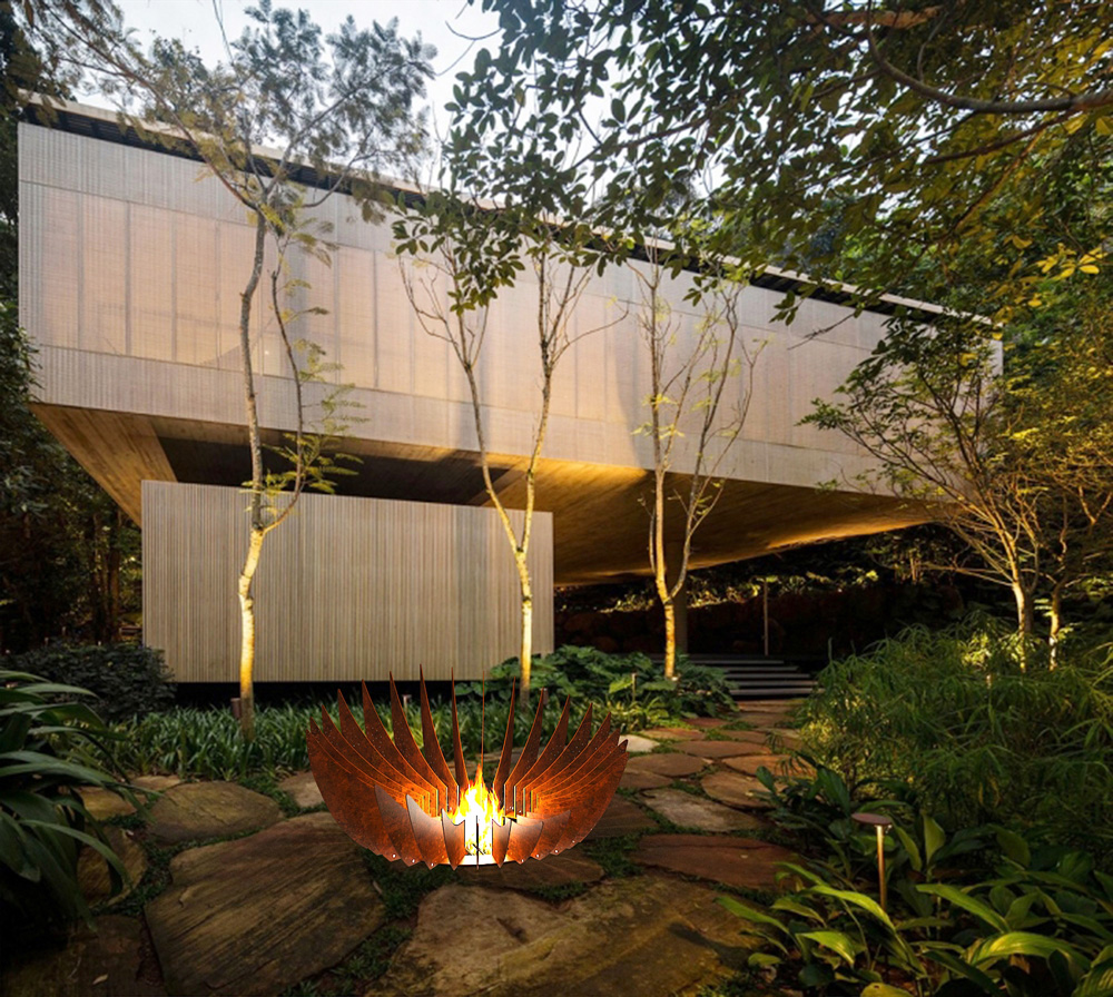 Помимо декоративной функции лепестки защищают от открытого огня. Эффектная конструкция камина сделает его заметным арт-объектом и днем и вечером.