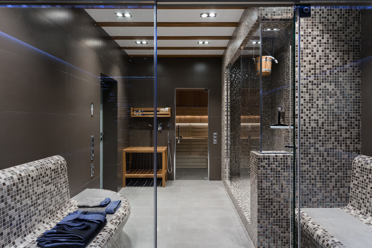 Дизайн хаммама отвечает общей современной стилистике комплекса. В состав оборудования вошли все доступные опции.
