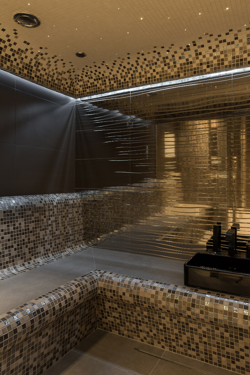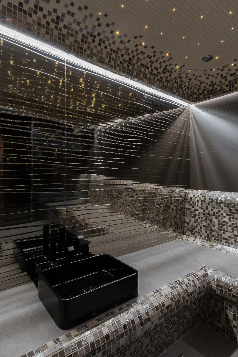 В отделке хаммама применяется мозаика, набранная индивидуально для этого проекта.