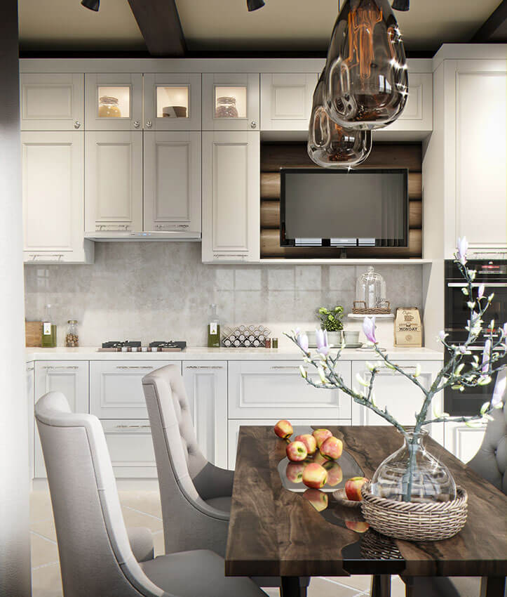 Работая над проектом, я старалась уйти от стереотипного восприятия стиля шале и воплотить основное пожелания заказчиков — сделать «современное шале, без веток и рогов».