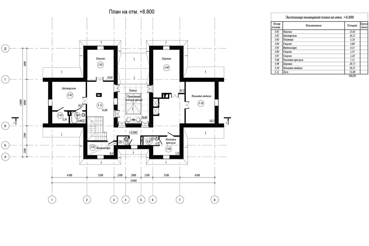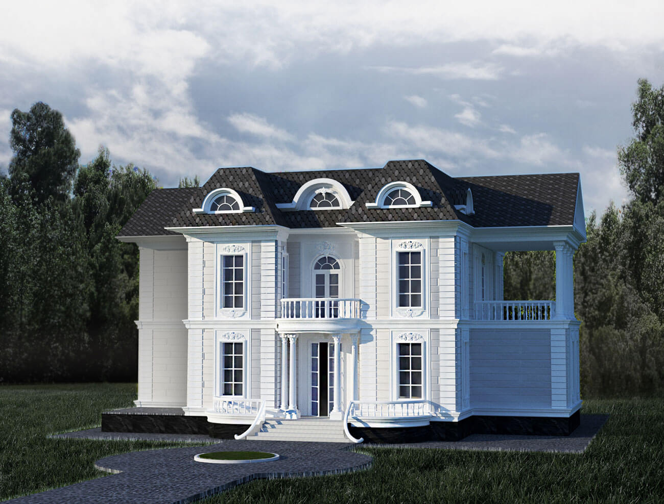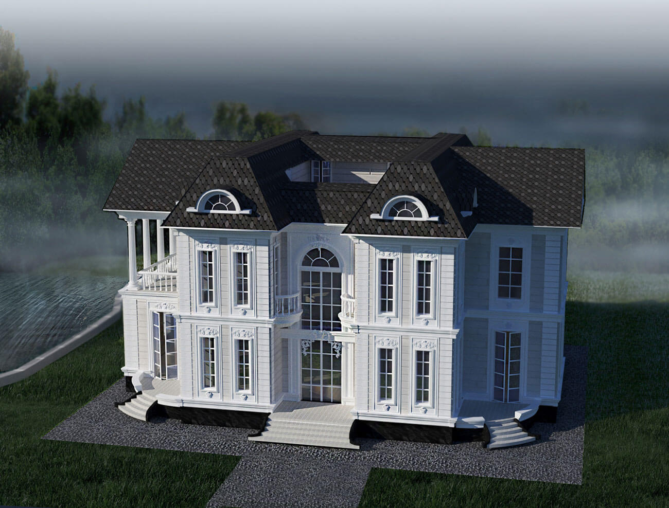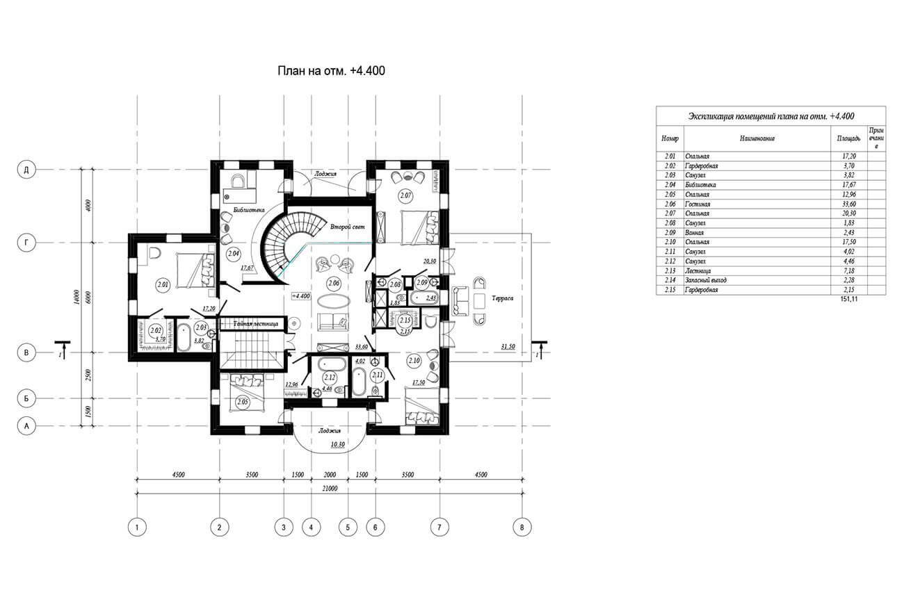 Мансардный этаж — более уединенное пространство. Здесь можно заняться любимым делом. На данном этаже располагаются мини-кинозал, игровая детская комната, комната отдыха, мастерская. Комната прислуги с индивидуальным санузлом (полноценное размещение прислуги предполагается в отдельном строении).