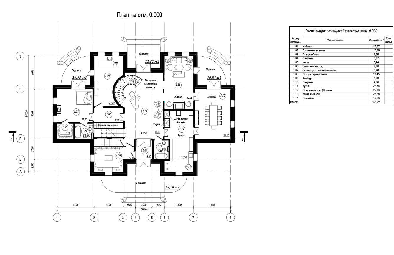 Предусмотрена тайная лестница, потайные двери и запасный выход в цокольном этаже (для экстренных случаев).
