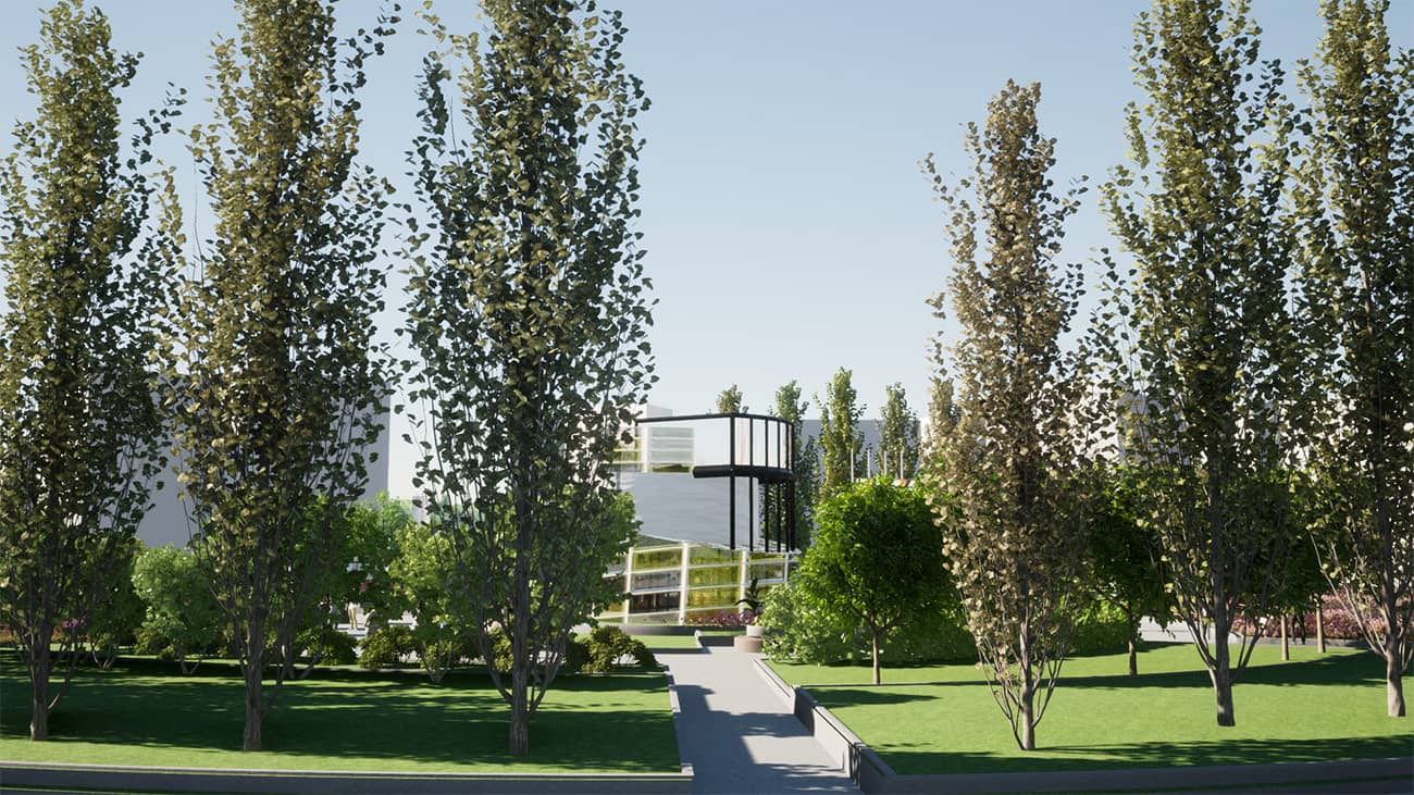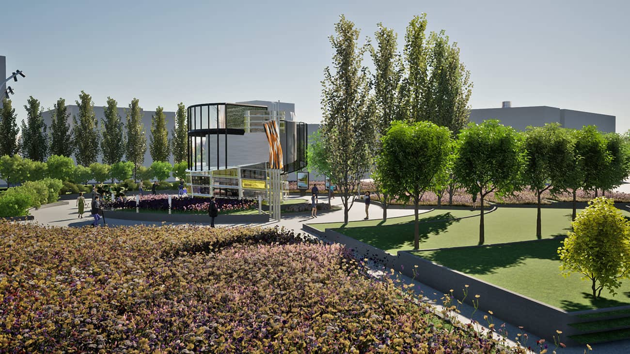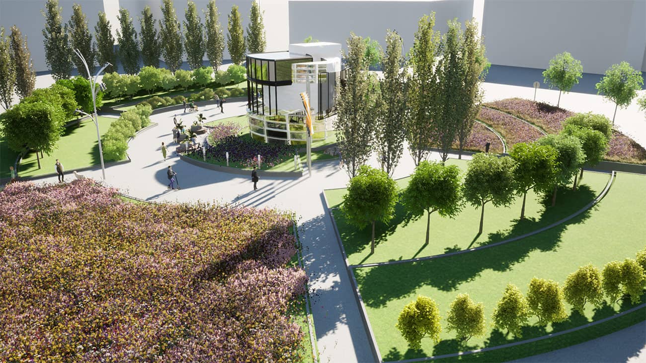 Круглая площадка разбита на сектора. Каждый сектор может быть тематически озеленен, и демонстрировать местное биологическое разнообразие. Особое внимание уделено организации видовых точек. В зоне отдыха используются обогреваемые в холодный период скамейки. В жаркое время предусмотрено включение распылителей воды для понижения температуры окружающего воздуха. В центре композиции находится «Павильон воздуха», предназначенный для тематических выставок или использоваться, как точка быстрого питания, например кафе мороженое.