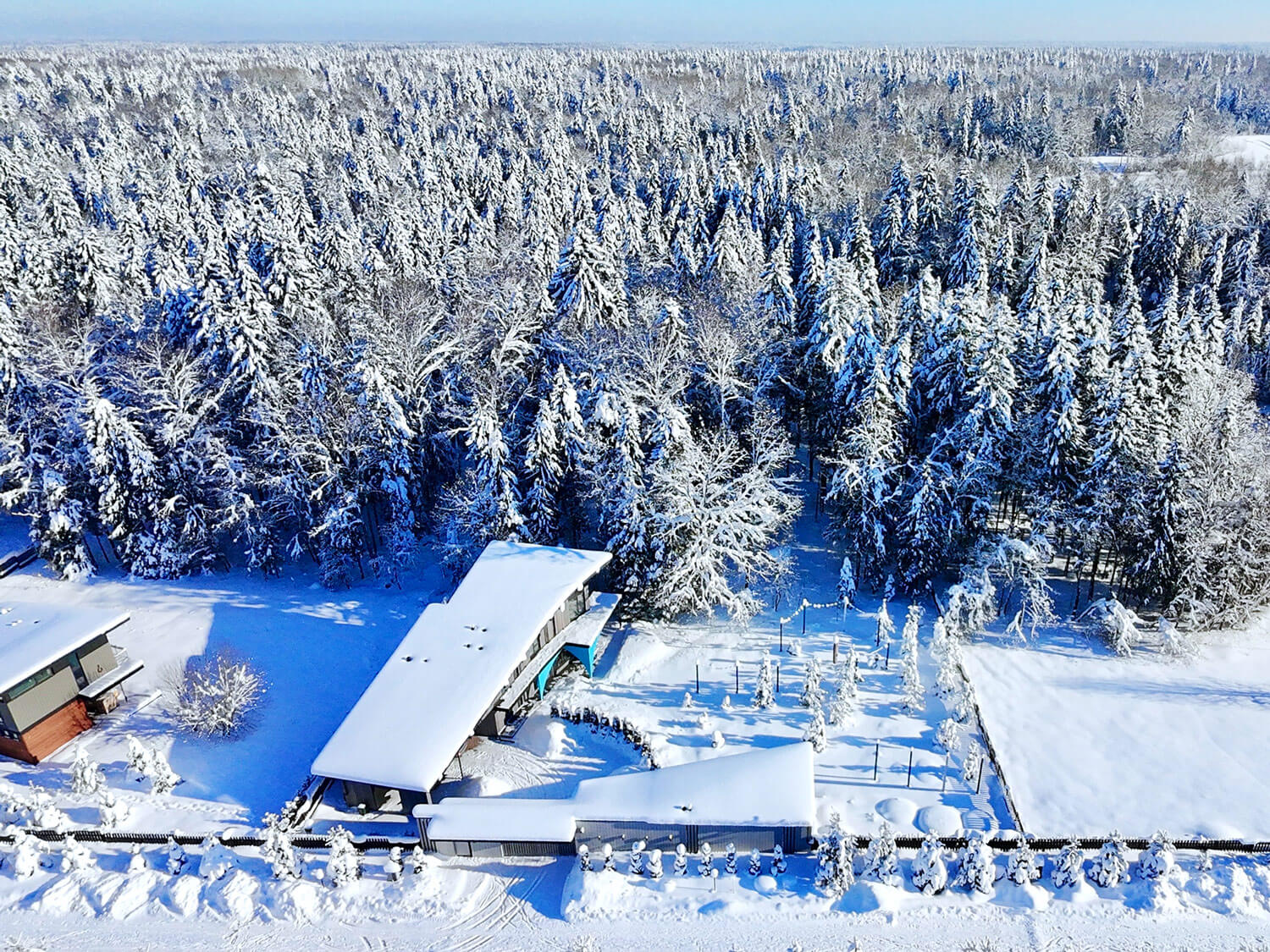 В отдельном здании расположены: студия, спорт пространство, мастерская, хоз помещение для инвентаря, входная группа.