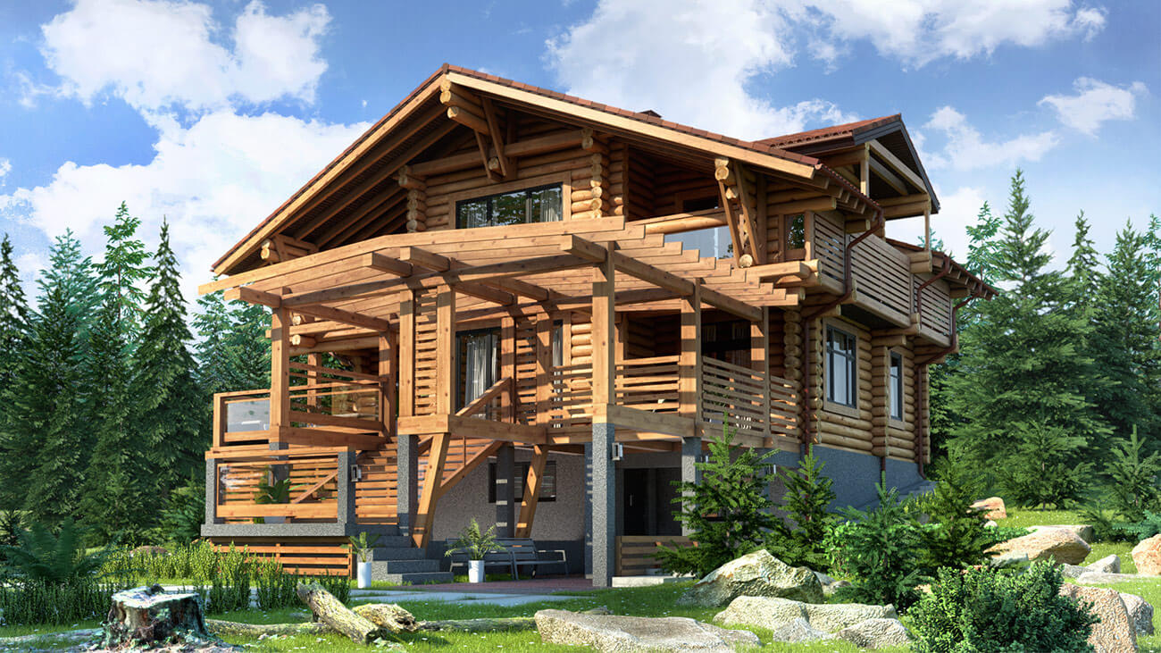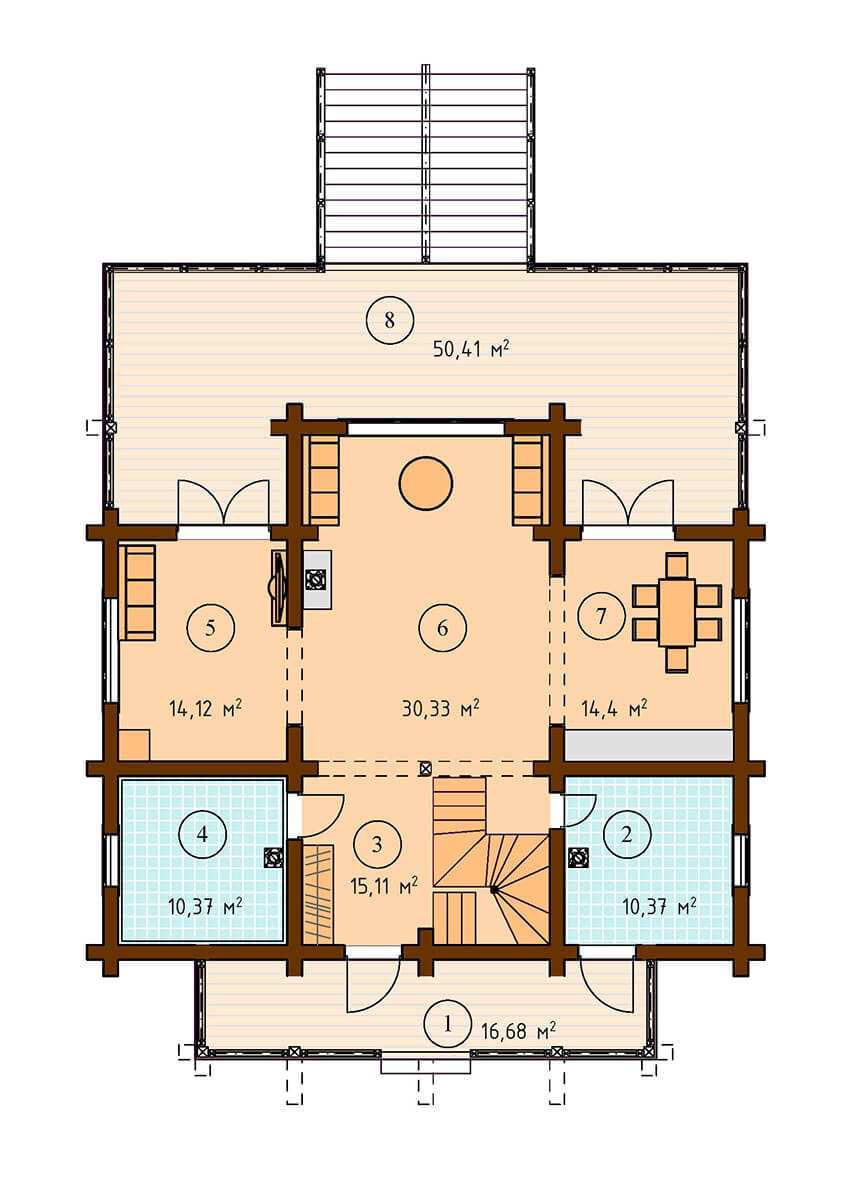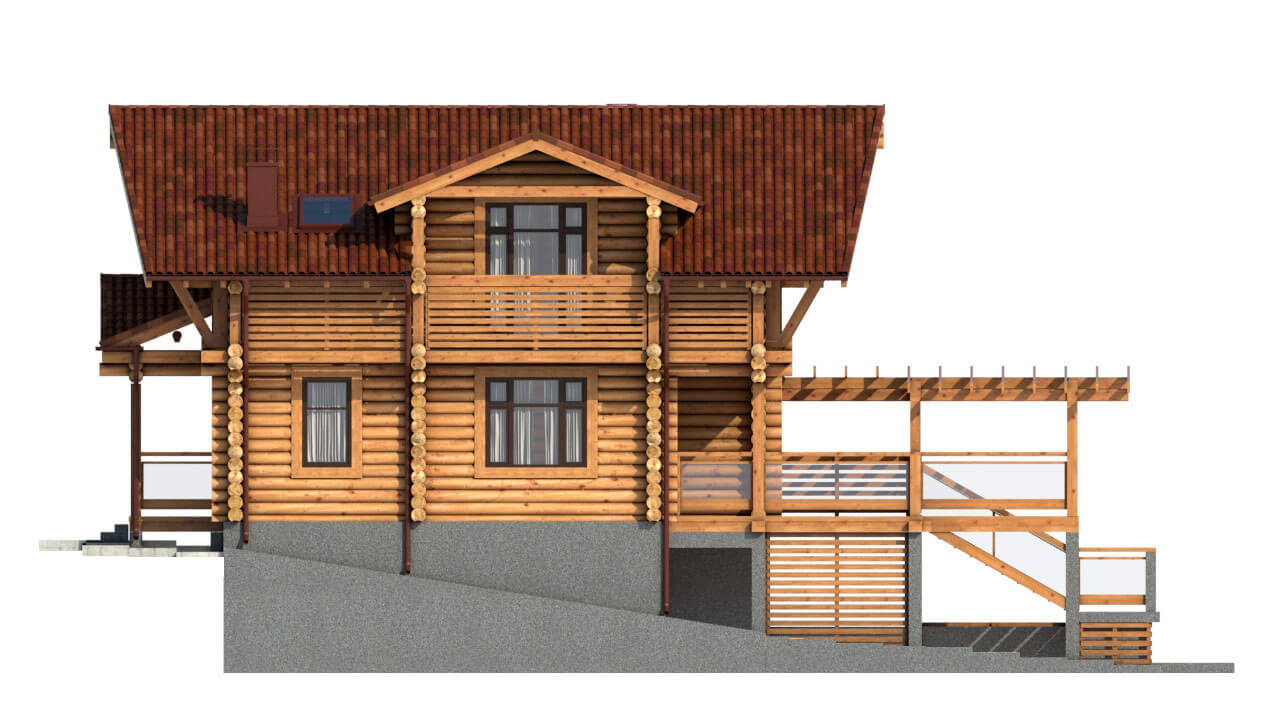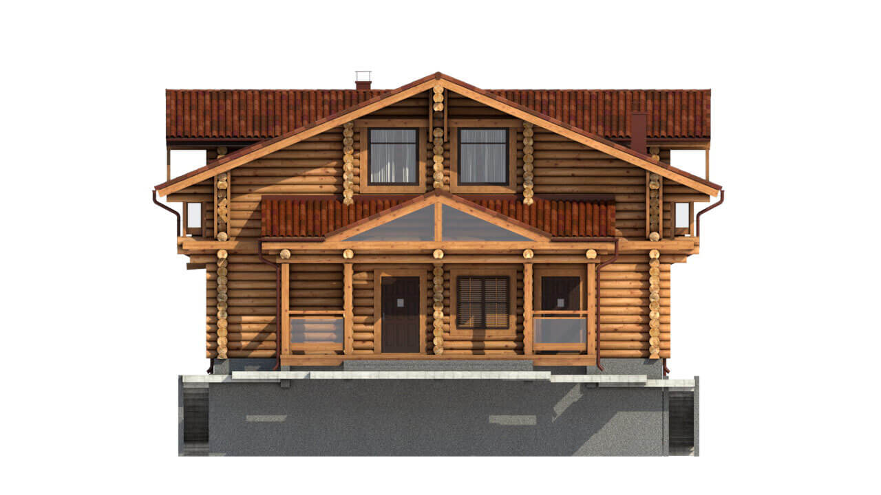 Заключительный штрих — мезонин, возвышающийся над участком, выходящий на главный фасад. Его внушительные размеры позволят разместить любую компанию в лучших условиях, а под перекрытием террасы столько же затененного пространства для спокойного отдыха.