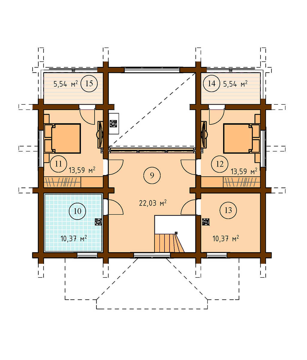 На мансардном этаже две спальни с отдельными балконами. Свет в спальнях западный, южный и восточный. Просторный холл освещен вторым светом. Большой санузел и такой же большой гардероб.