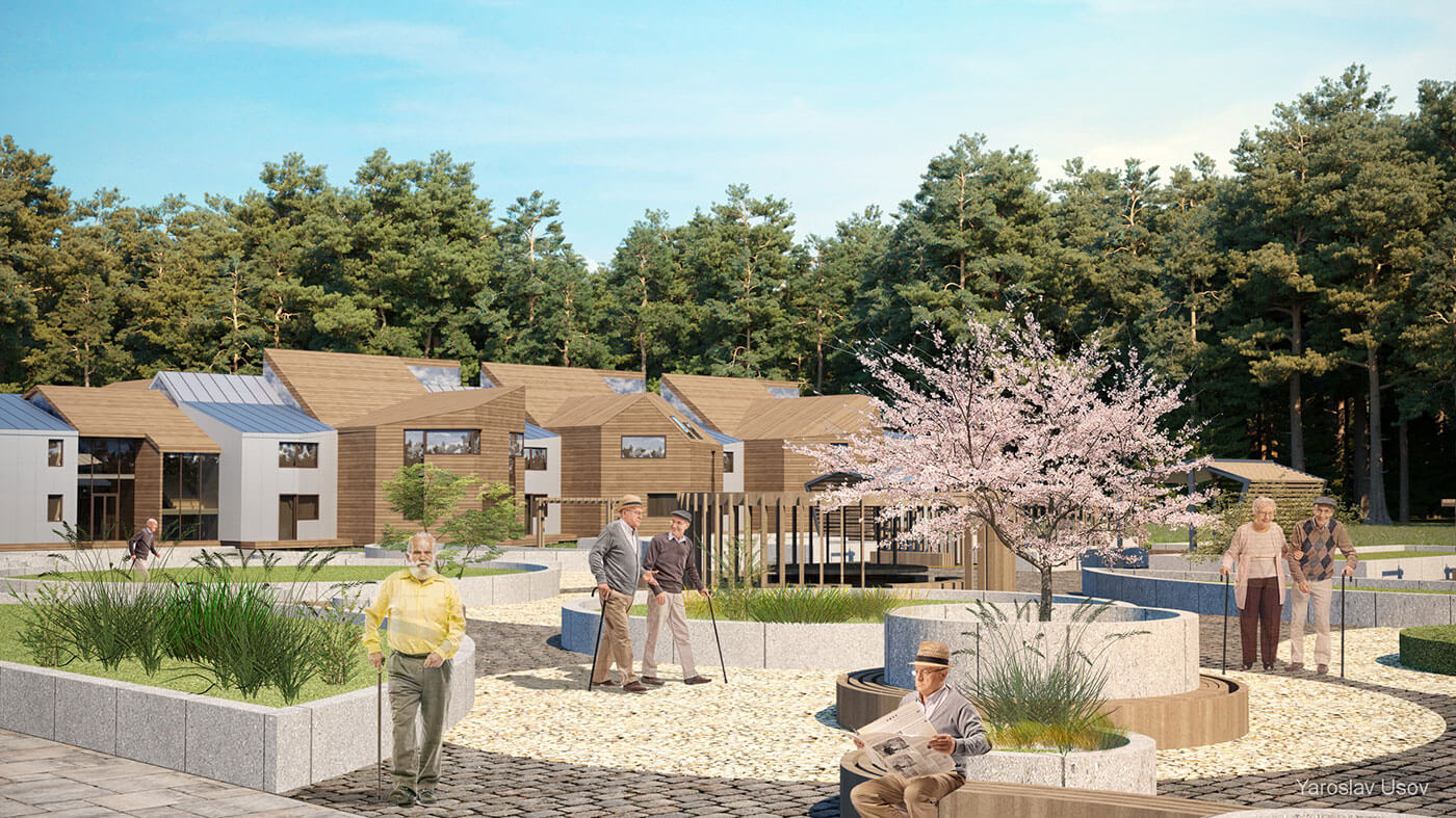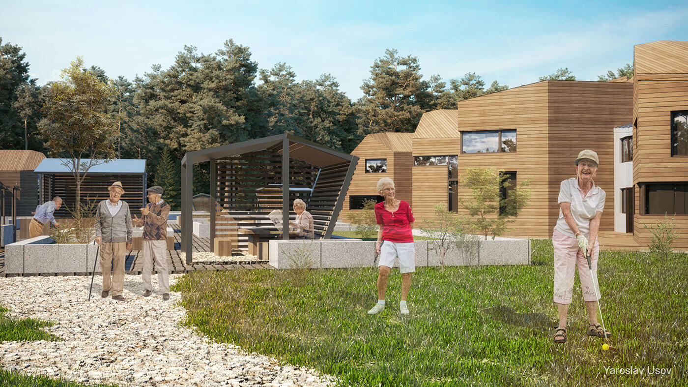 Концепция пансионата для пожилых выполнена на условном участке площадью 7 га в Московской области. Проектом предусмотрено создание комфортной среды, способствующей отдыху и оздоровлению в гармонии с природой в атмосфере, приближенной к домашней.