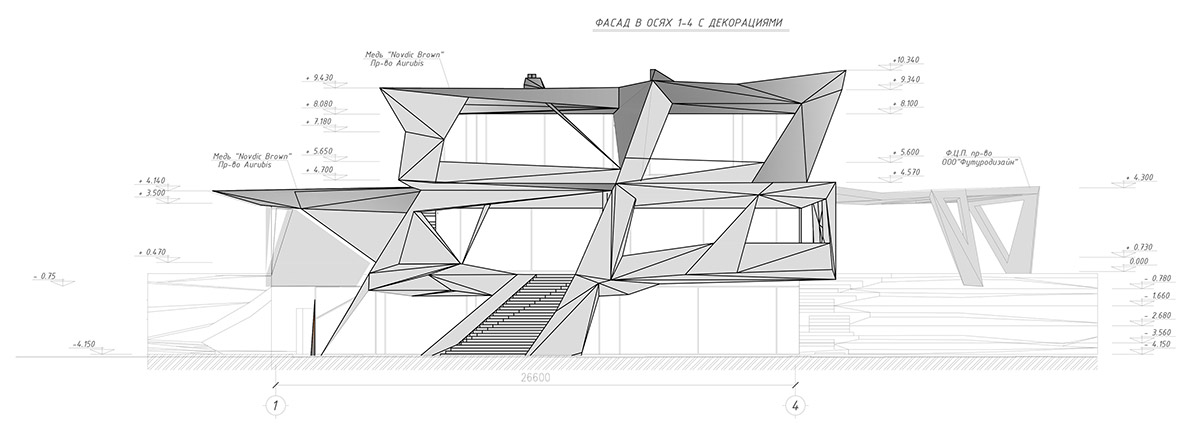 Проектирование здания с параметрической архитектурой основывалось на базе синергии творческо-художественных поисков с алгоритмами компьютерного моделирования.