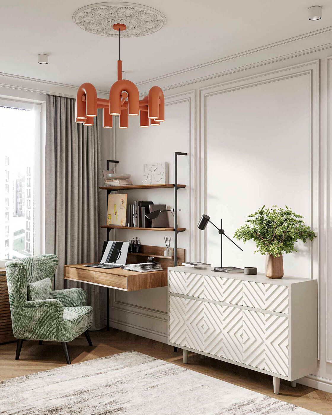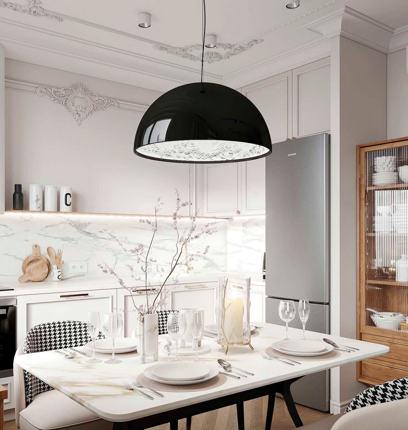 Высокие потолки, лепной декор, классические панельные стены Буазери — всё это важные архитектурные элементы, создающие элегантную основу Паризьена.