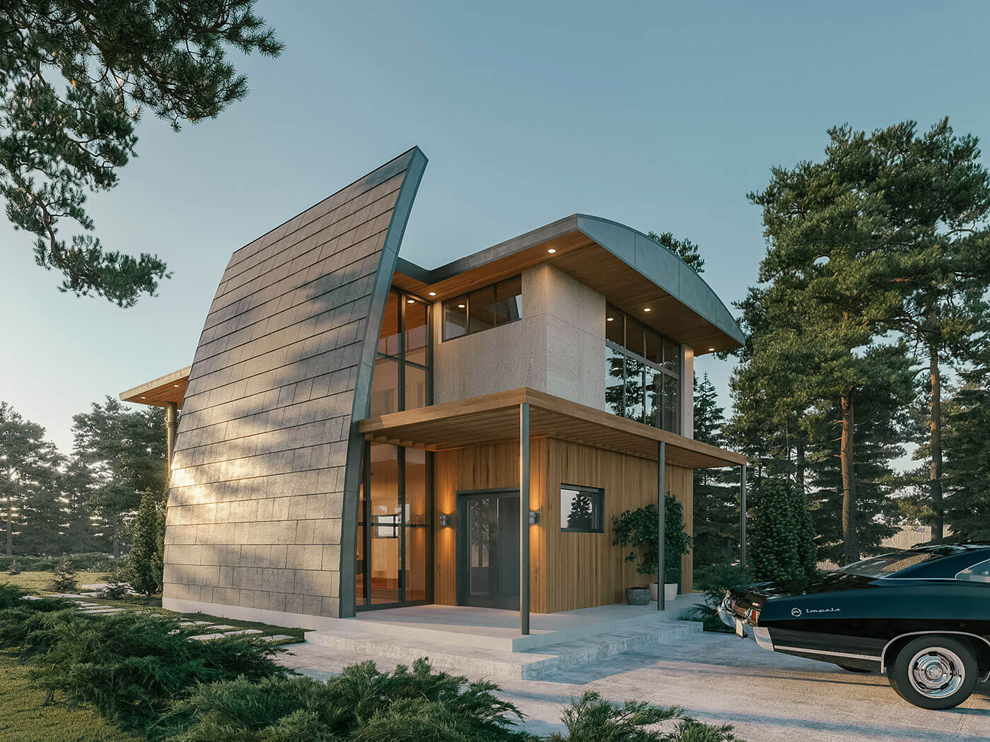 Проект дома, предназначенного для временного времяпрепровождения, отдыха за городом. Площадка для проектирования располагается в Ленинградской области в сосновой роще, недалеко от Финского залива.